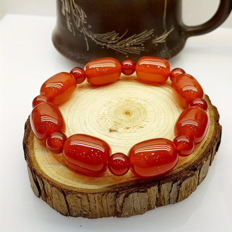 Enhance your jewelry collection with this exquisite 18mm natural red agate drum stone bead. Perfect for attracting good fortune and prosperity, this unisex piece is ideal for daily wear.