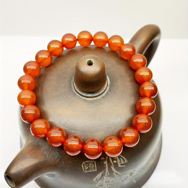 Elegant and vibrant red Carnelian beads bracelet perfect for women. It's a beautiful piece that adds a touch of sophistication to any outfit. Ideal for outdoor activities and year-round wear.