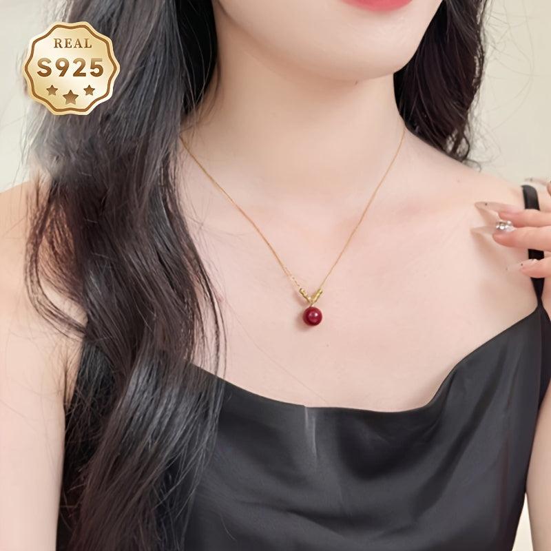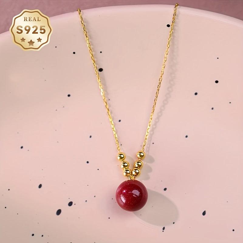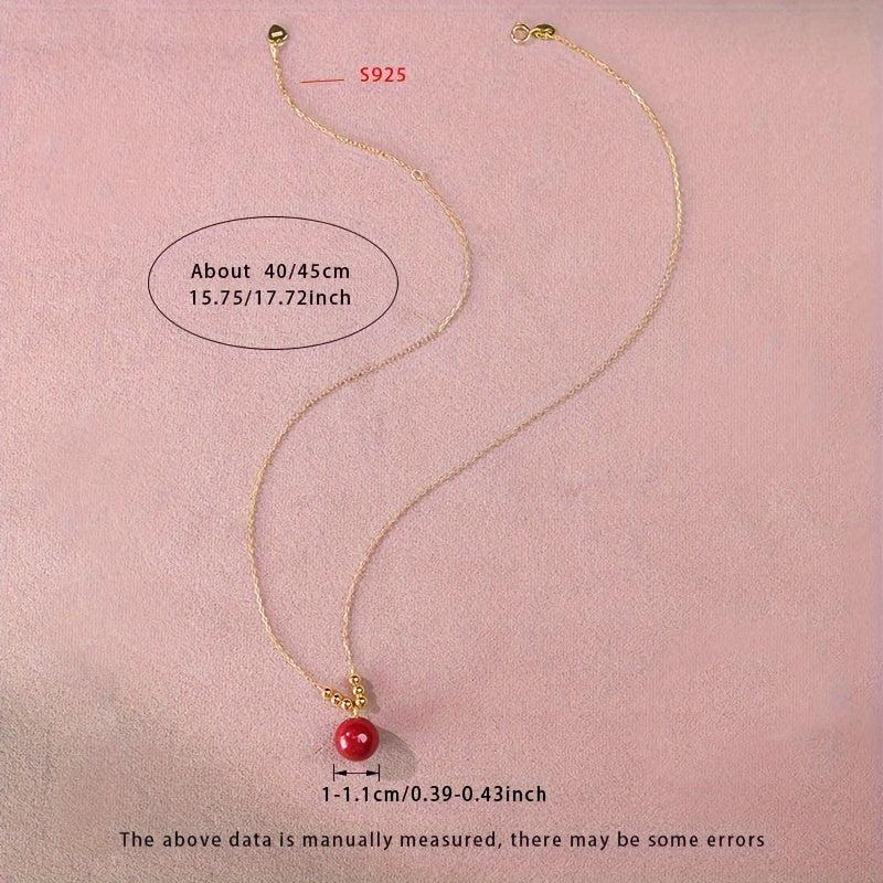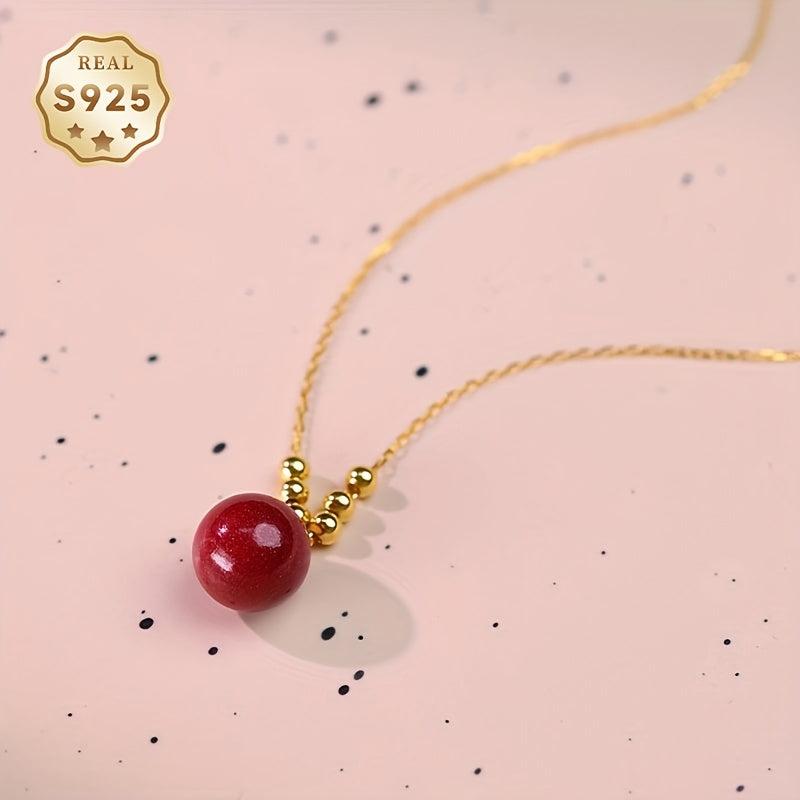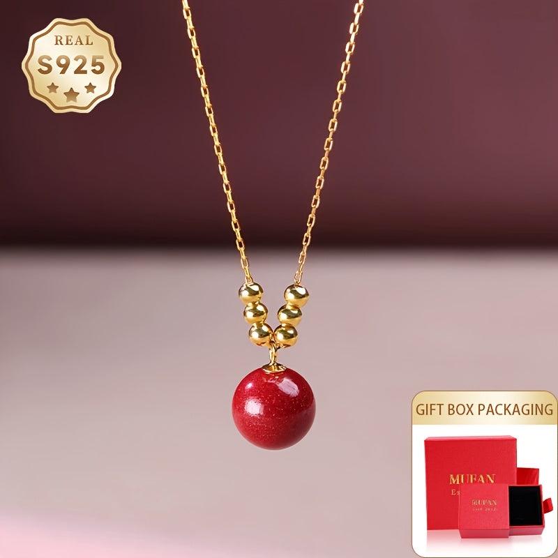 Elegant red cinnabar necklace for women with a stylish pendant made of high-content S925 silver. The pendant features a 10mm cinnabar stone.