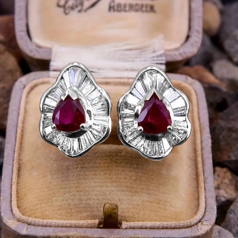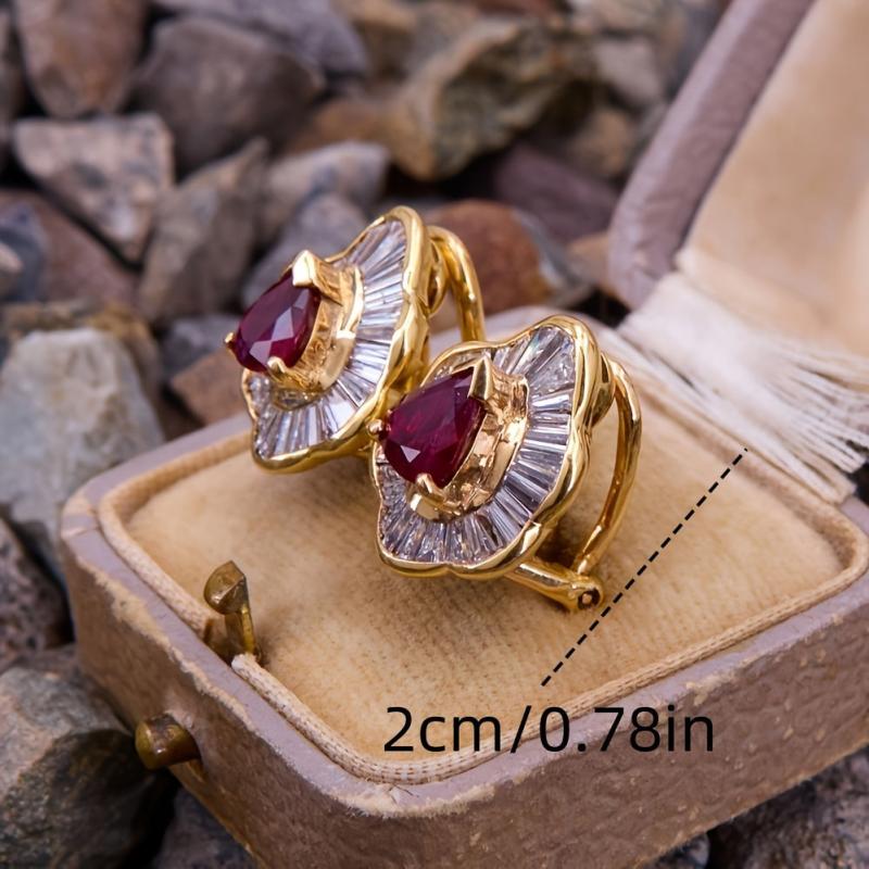 Add a touch of vintage glamour to your look with these stunning red gemstone dangle earrings. Adorned with sparkling cubic zirconia, these earrings are perfect for weddings, parties, or everyday wear.