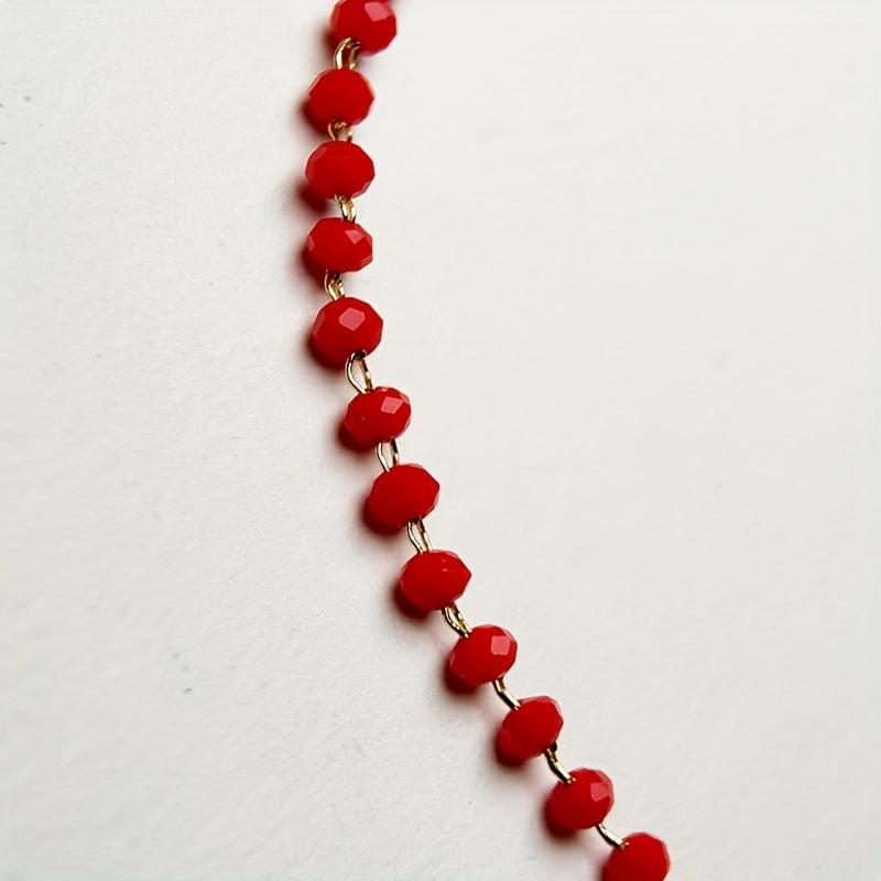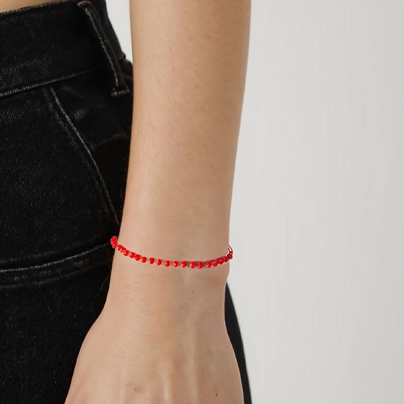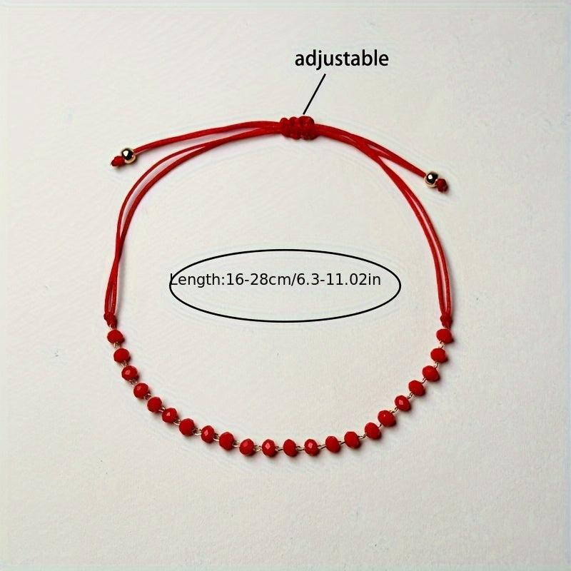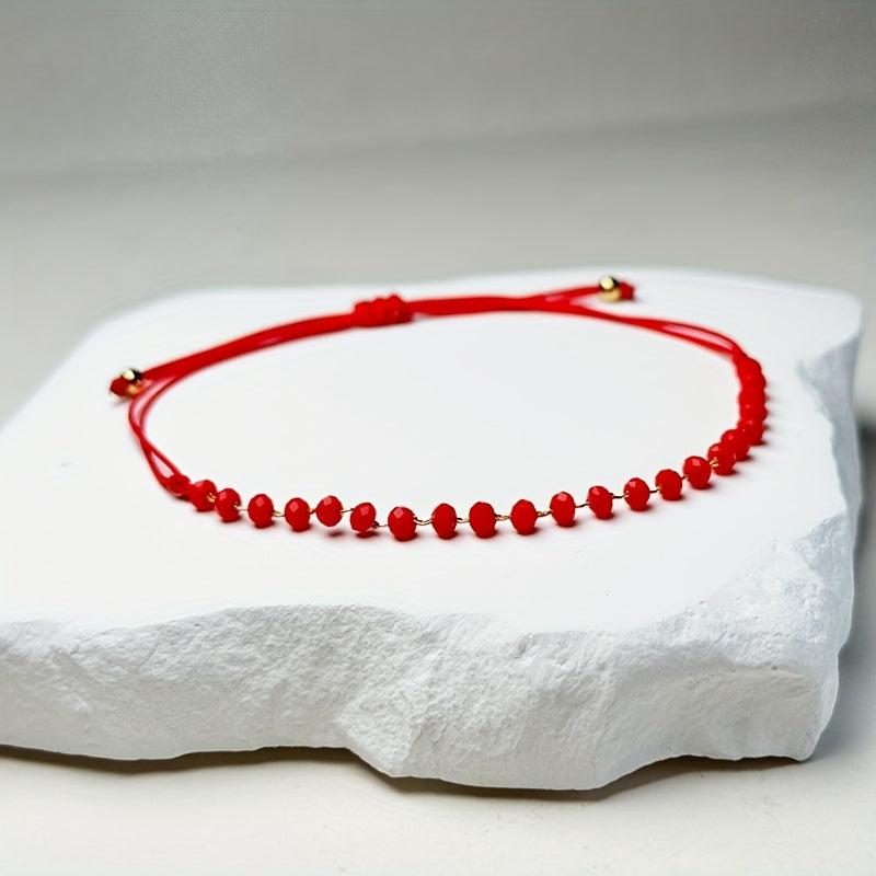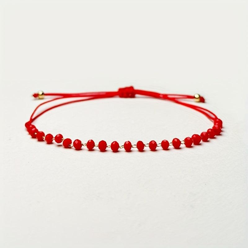 Elegant red glass bead bracelet that is perfect for women. The adjustable braided design with golden accents makes it a versatile accessory. Ideal gift for mom, daughter, wife, or as an everyday inspirational piece.