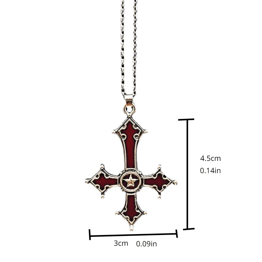 This red gothic inverted cross pendant necklace is the perfect accessory for punk rock or Halloween-inspired looks. It is unisex and can be worn by both women and men.