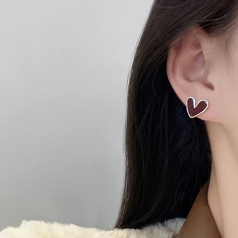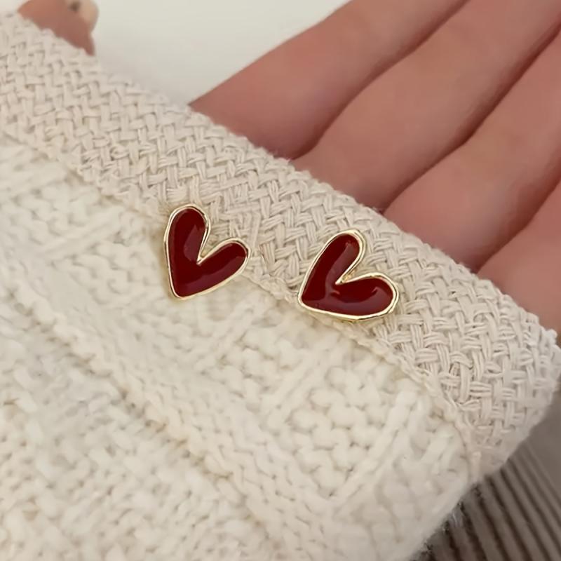 These stylish red heart stud earrings are perfect for everyday wear. Made of high-quality zinc alloy, they are suitable for casual outfits or as a thoughtful gift for someone special.