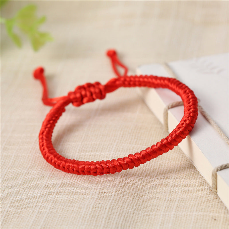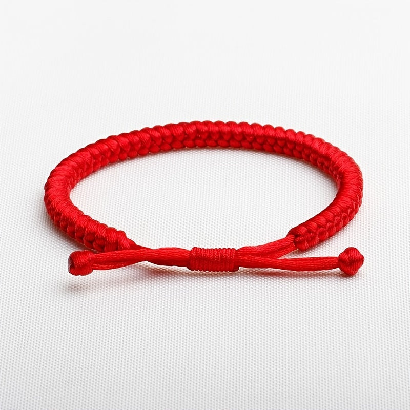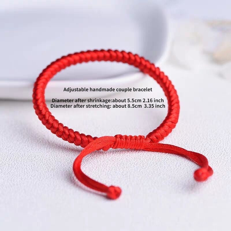 This red rope bracelet with a diamond knot design is perfect for couples, men, women, and children. Handcrafted for safety and style.