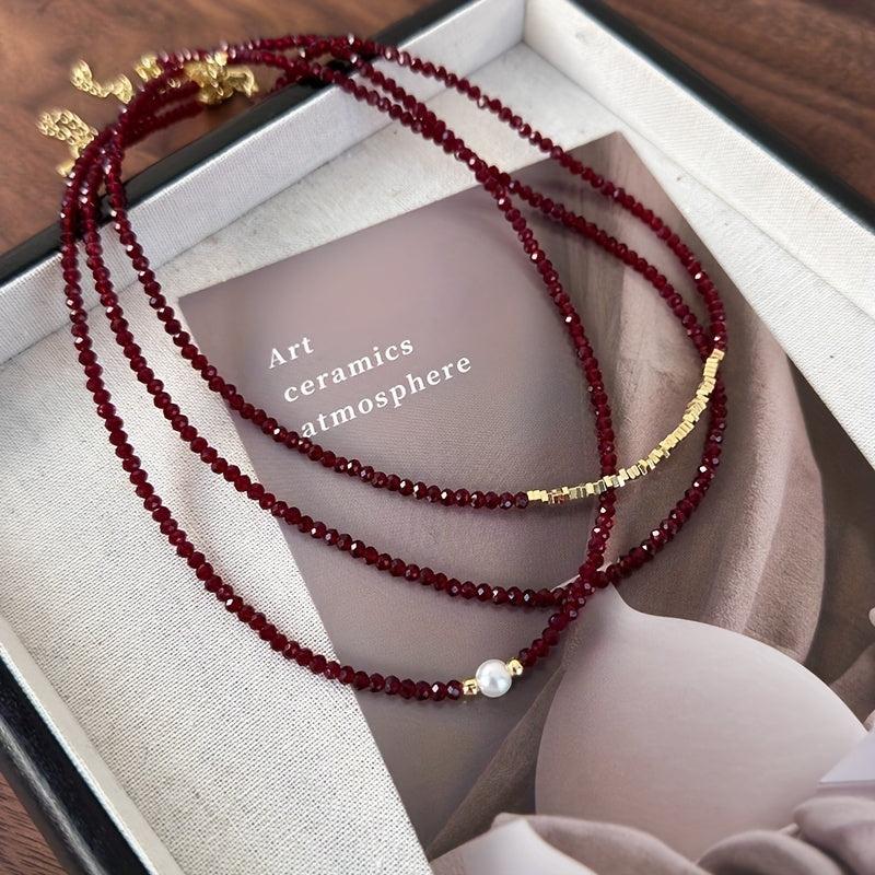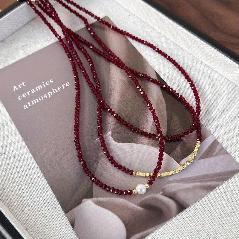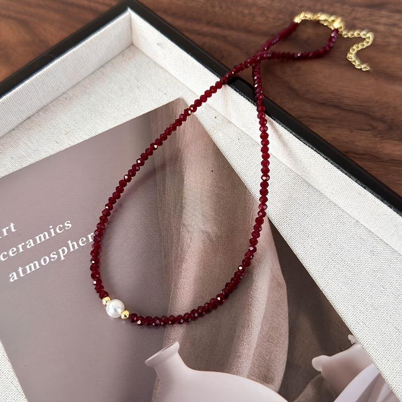 Add a touch of sophistication to your outfit with this stylish red stone necklace. Perfect for daily wear or special occasions, this versatile piece makes a great gift for your girlfriend or mother.