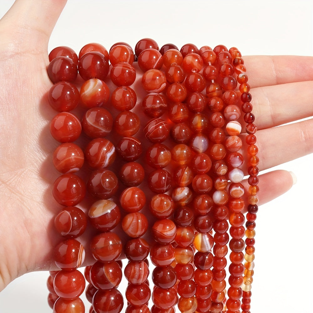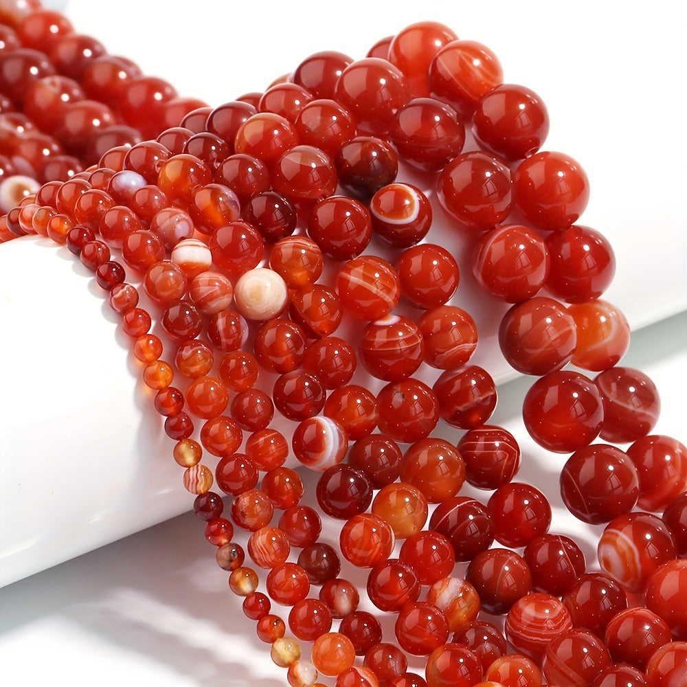 Create beautiful jewelry with these natural red striped pattern agate beads. Perfect for making bracelets, necklaces, and other accessories. Available in sizes 4mm, 6mm, 8mm, 10mm, and 12mm.