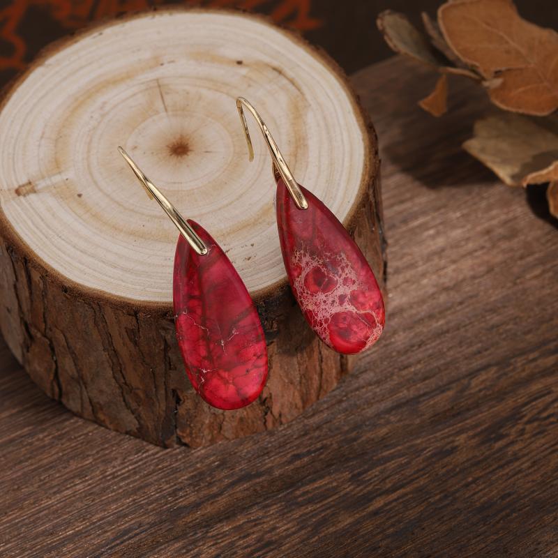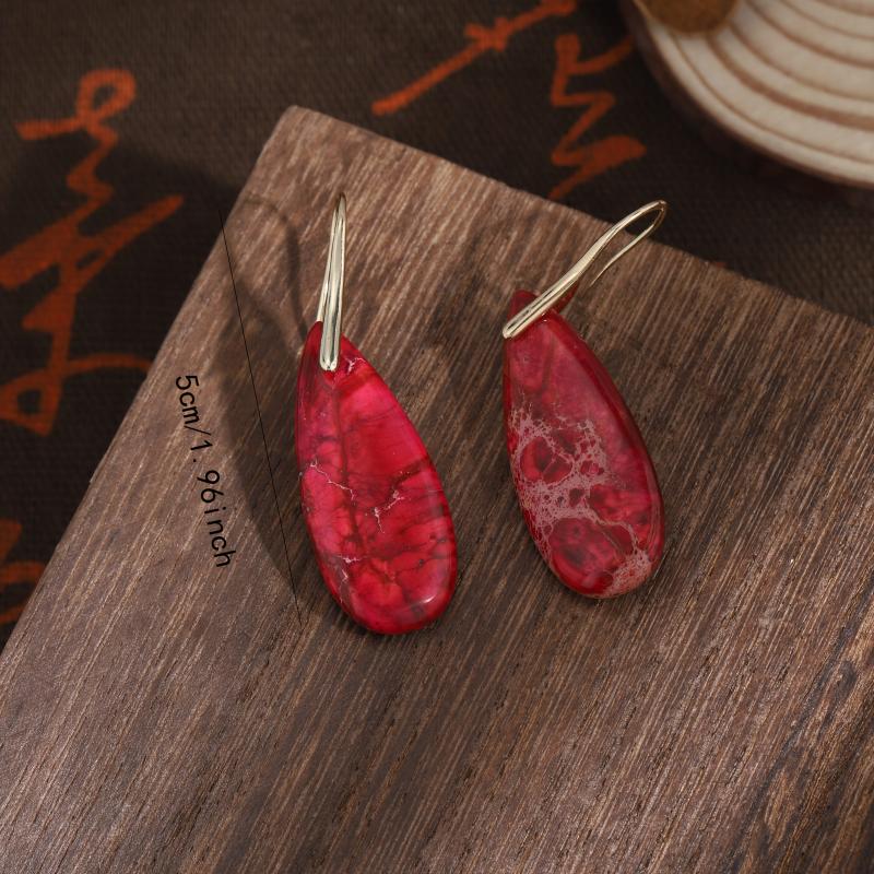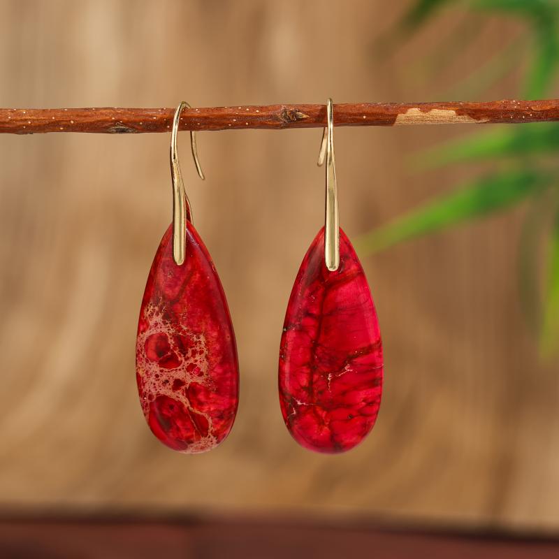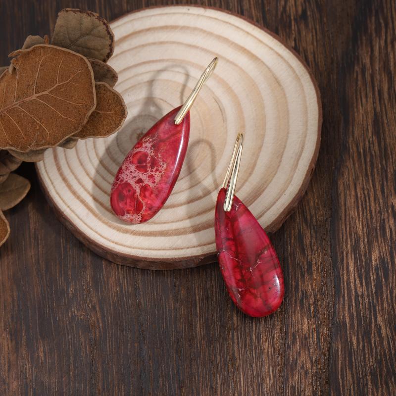 These natural red tropical bohemian earrings with vintage style stone creation and copper hooks are the perfect daily gift for all seasons.