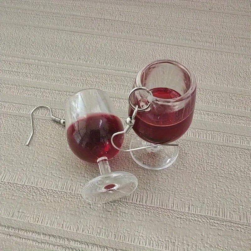 These fun earrings feature a liquid red wine glass dangle design, perfect for your next party or celebration. Bring some Y2K vibes to your outfit with these unique earrings.