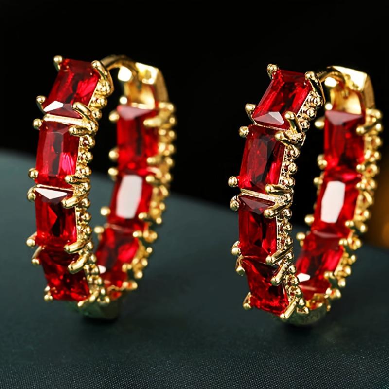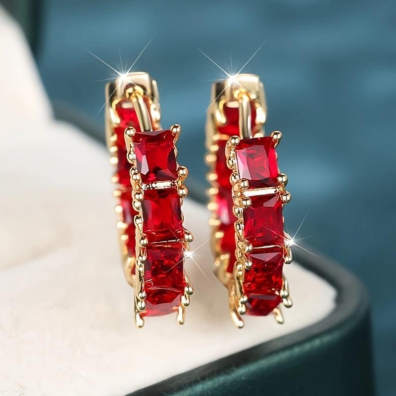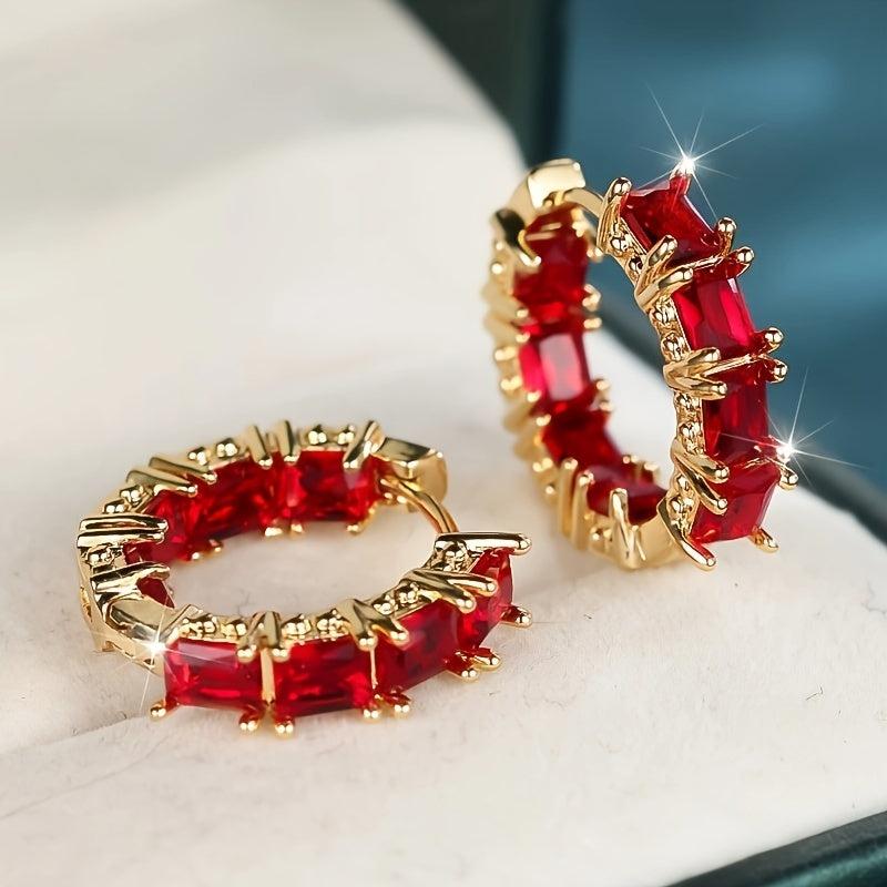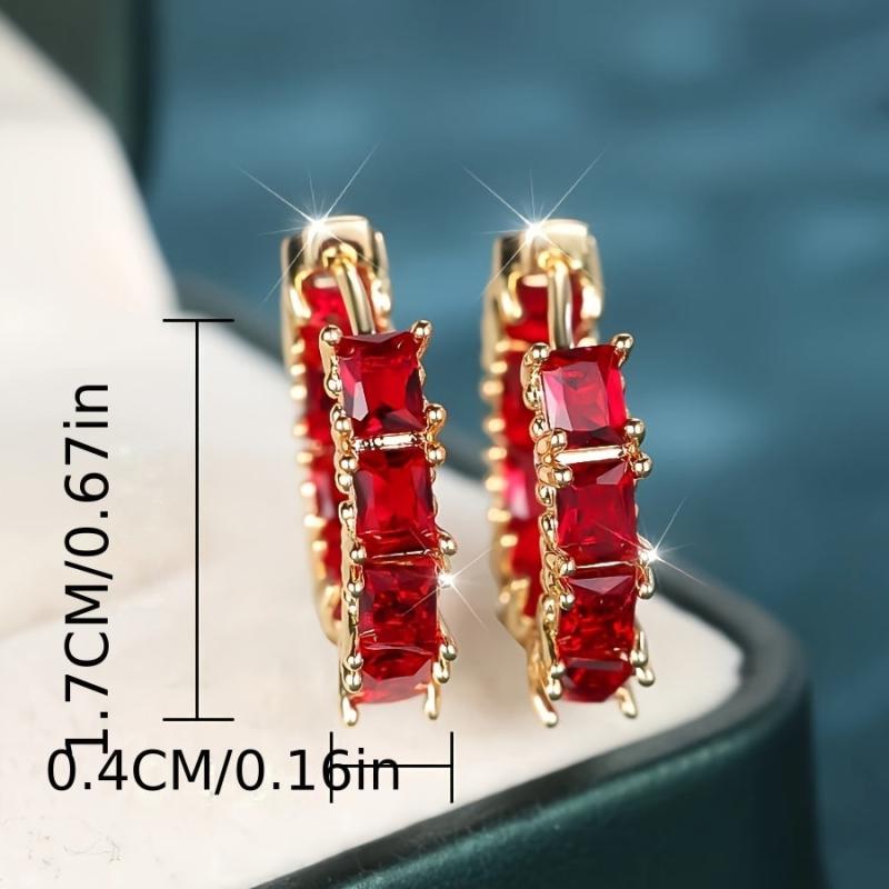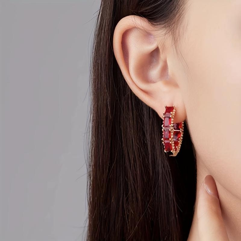 These red synthetic zircon hoop earrings are perfect for banquets, parties, and daily wear. They are durable and stylish accessories that make a great gift for her.
