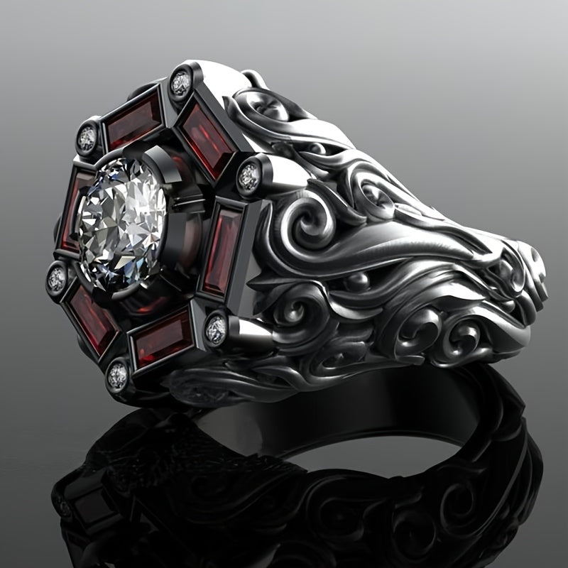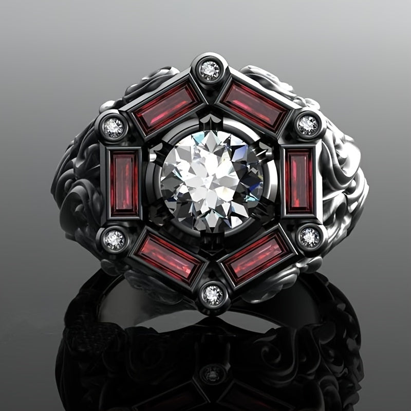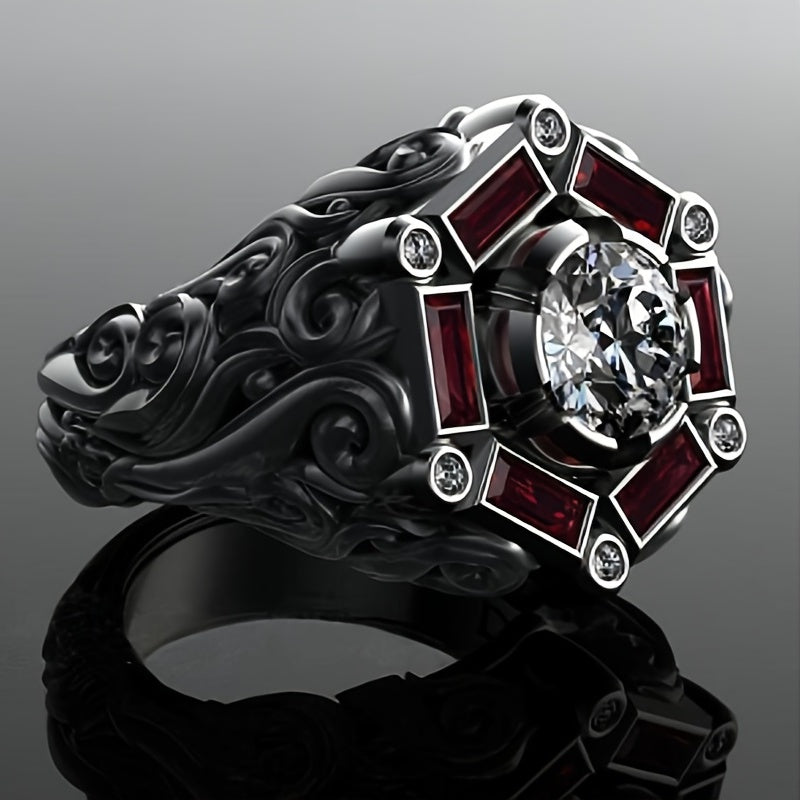 Hip Hop Punk Men's Ring Accessories with a striking red zircon design. Perfect for special occasions and adding a bold touch to your look.