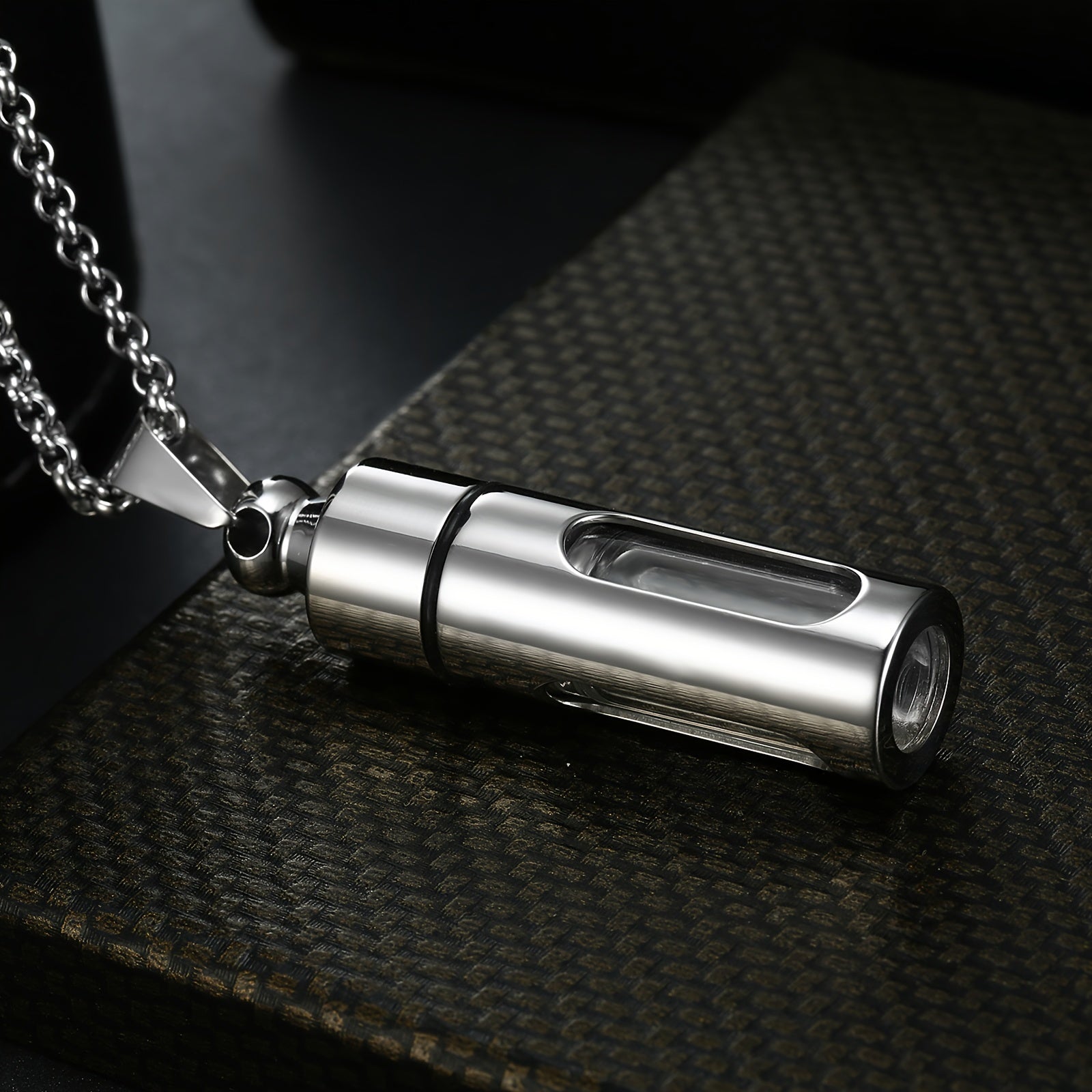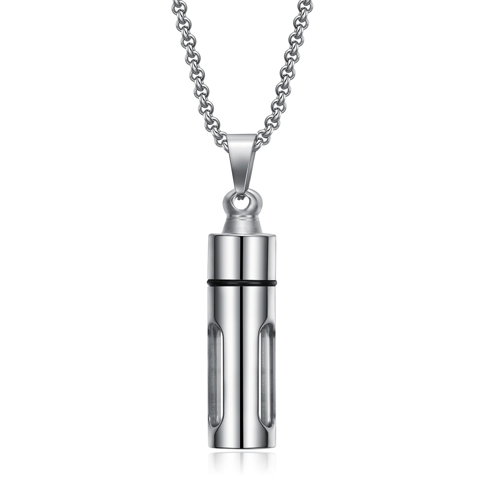 Enhance your style with this creative stainless steel necklace featuring a removable perfume bottle pendant. Perfect gift for men.