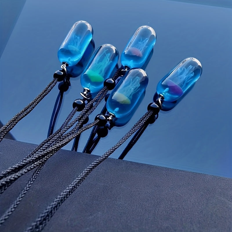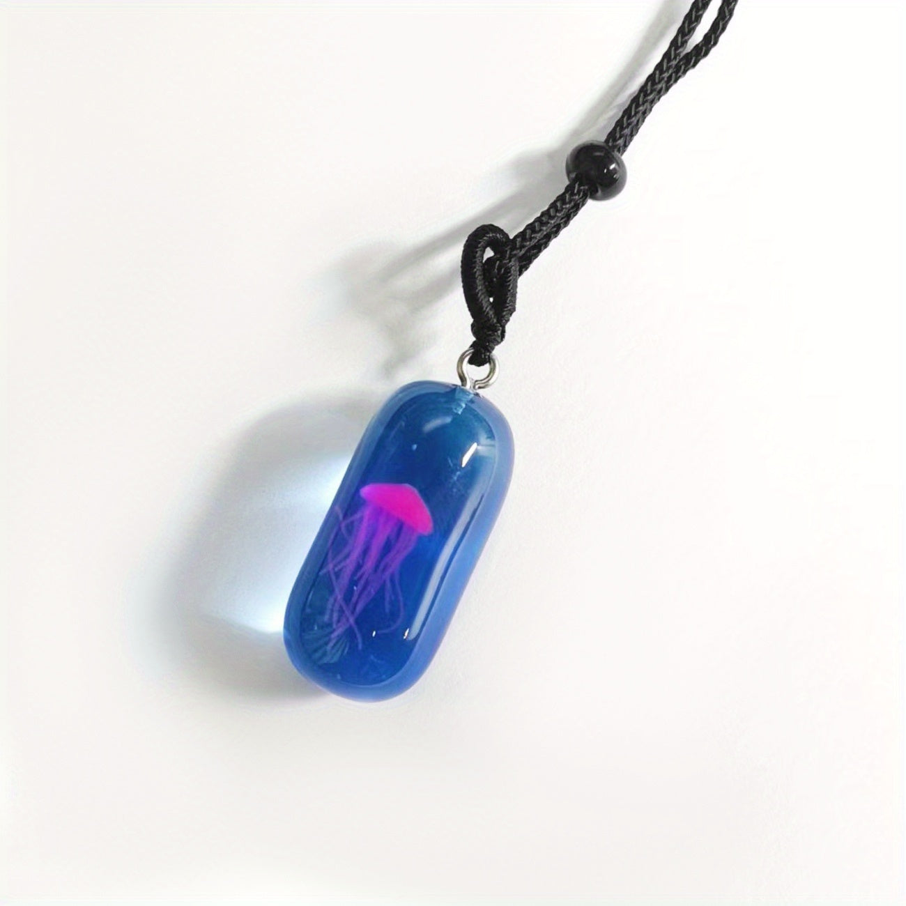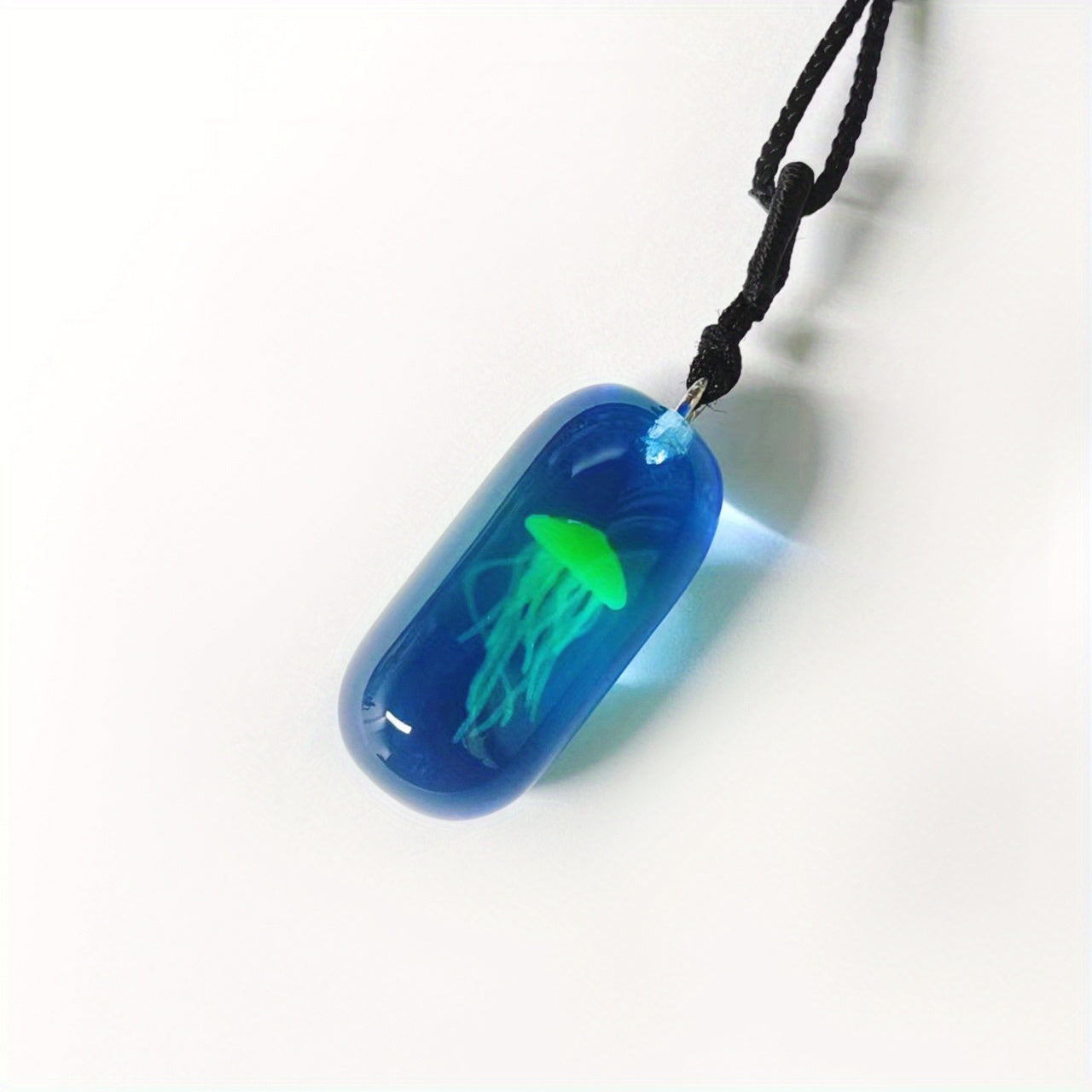 Add a touch of the ocean to your outfit with this luminous jellyfish necklace. The resin pendant glows in the dark for a stunning effect.