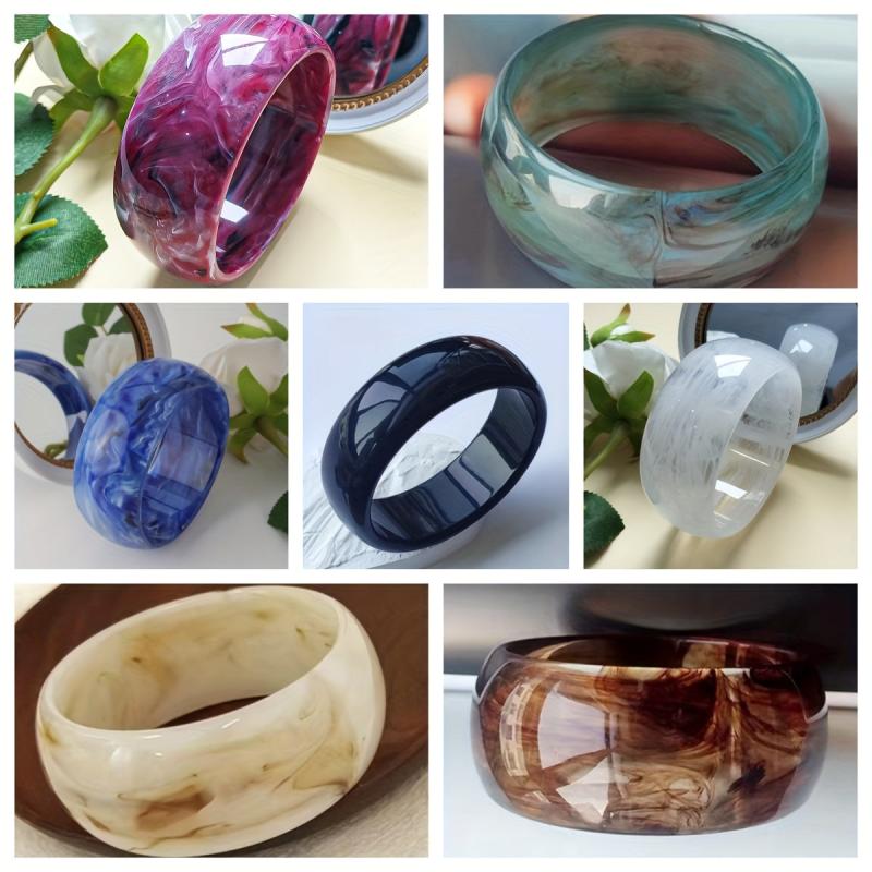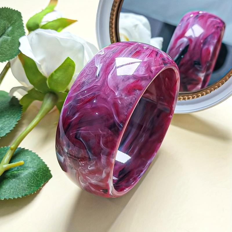 Elevate your style with this marbled resin wide bracelet featuring a versatile retro and bohemian design. The geometric three-dimensional details add an artistic and sexy flair.