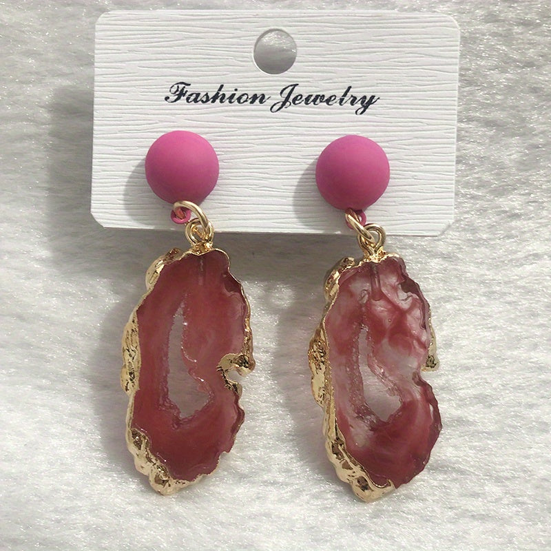 Add a touch of elegance to your outfit with these irregular resin stone dangle earrings. Made with 18K plated ear jewelry, these earrings are perfect for women and girls who want to make a statement.