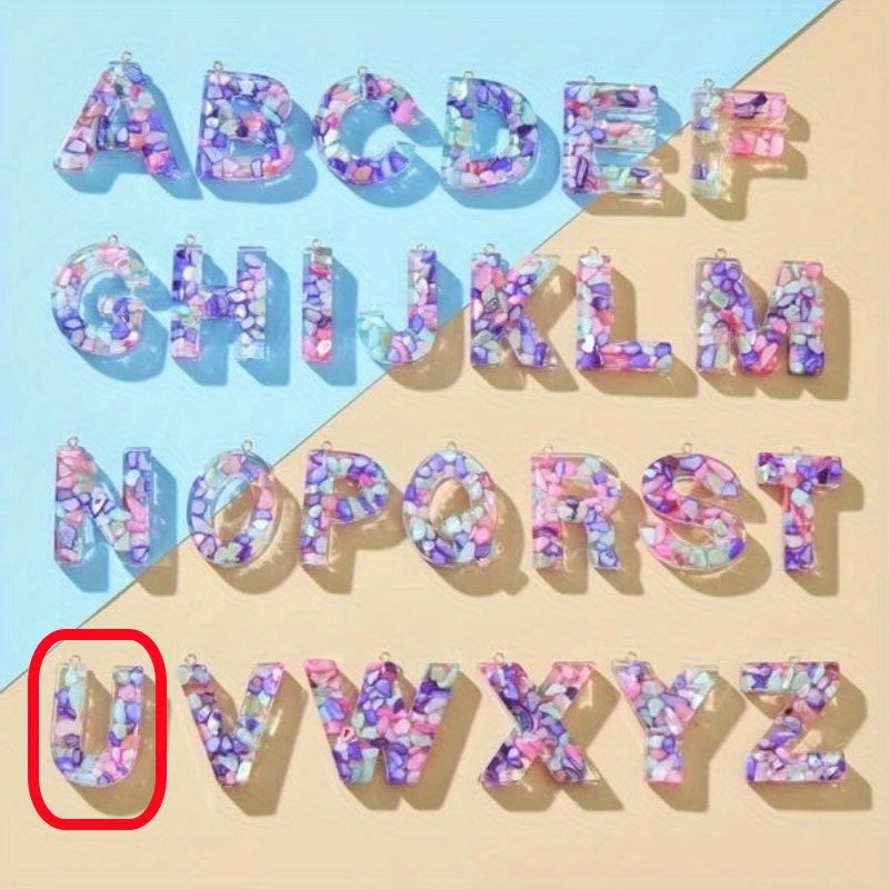 Create your own unique jewelry with this resin U letter pendant. Perfect for DIY projects, necklaces, bracelets, and more.
