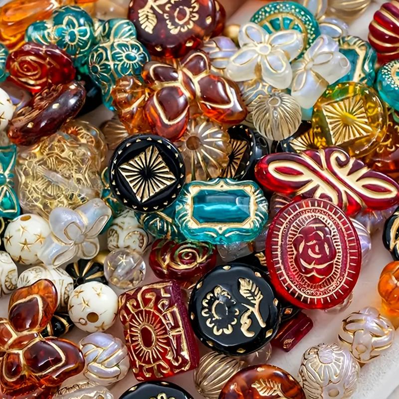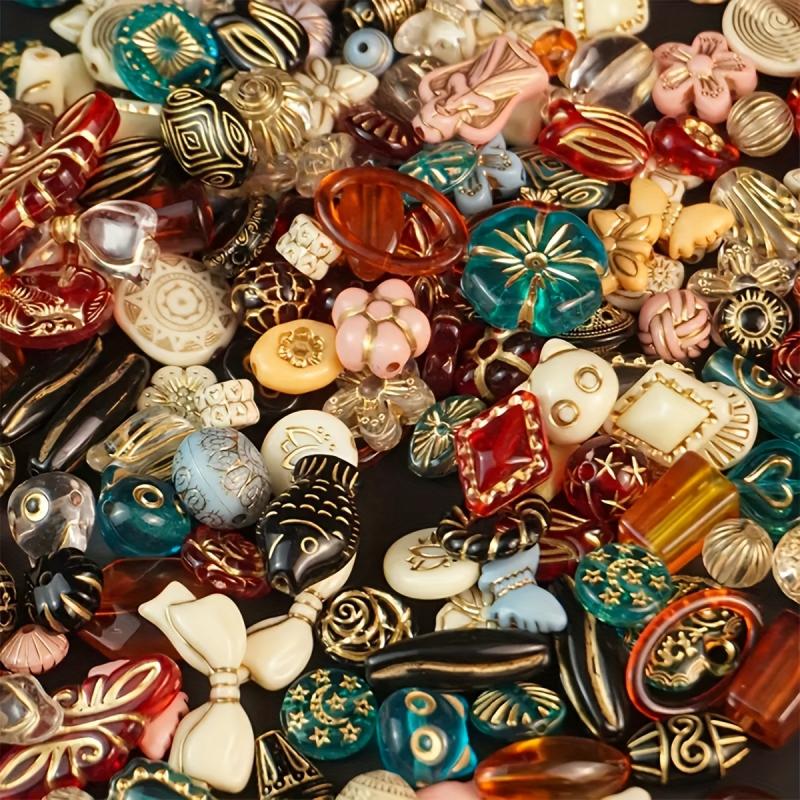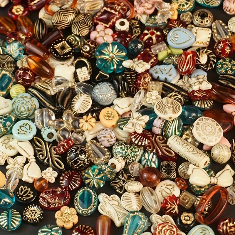 Get creative with these retro-style acrylic beads featuring a baroque golden embossed design. Perfect for making unique jewelry and bracelets. Each bead has pre-drilled holes for easy stringing.