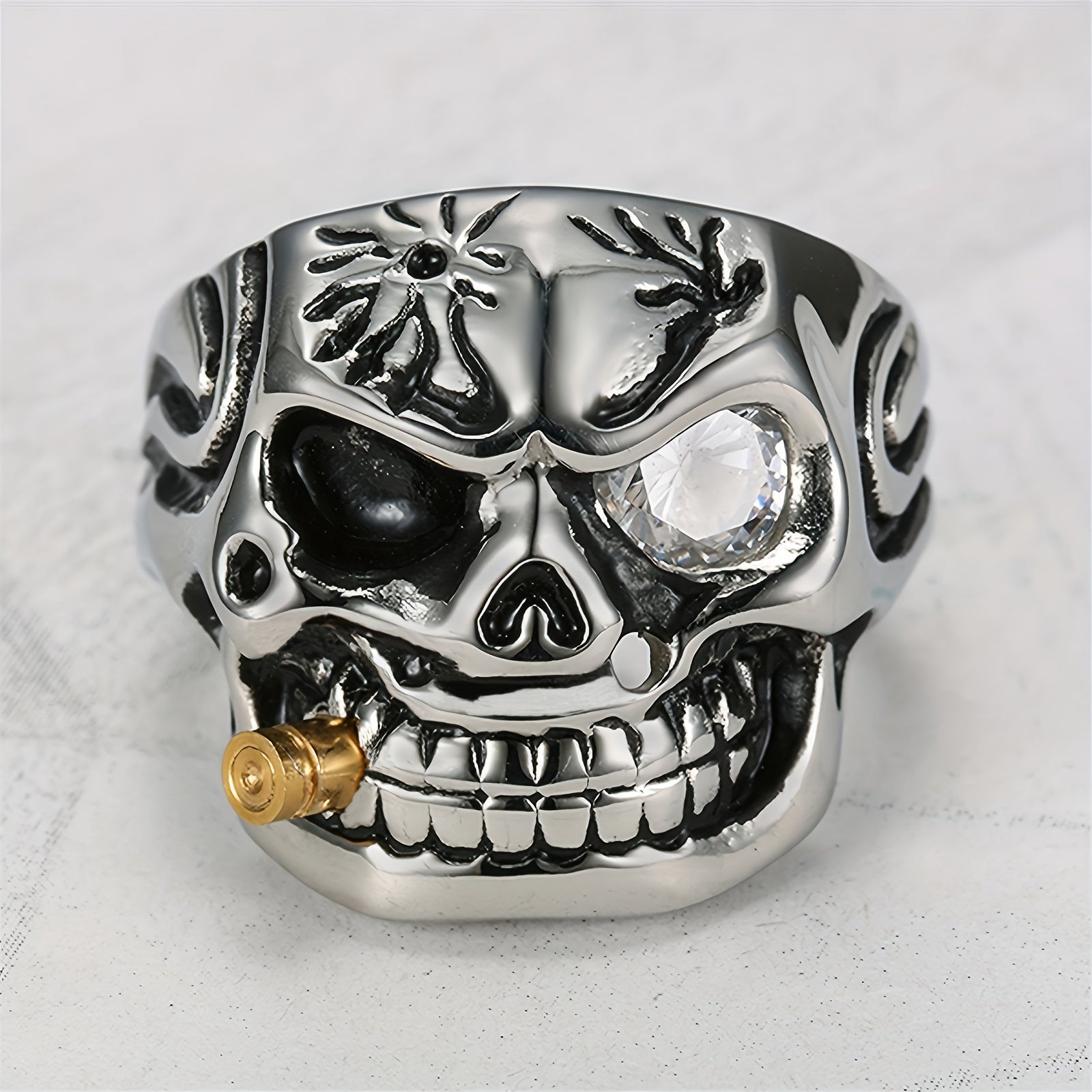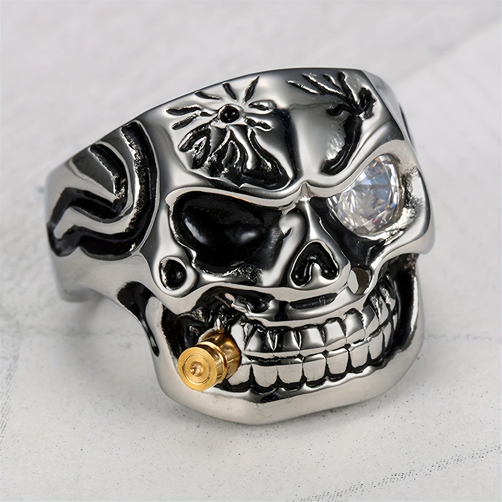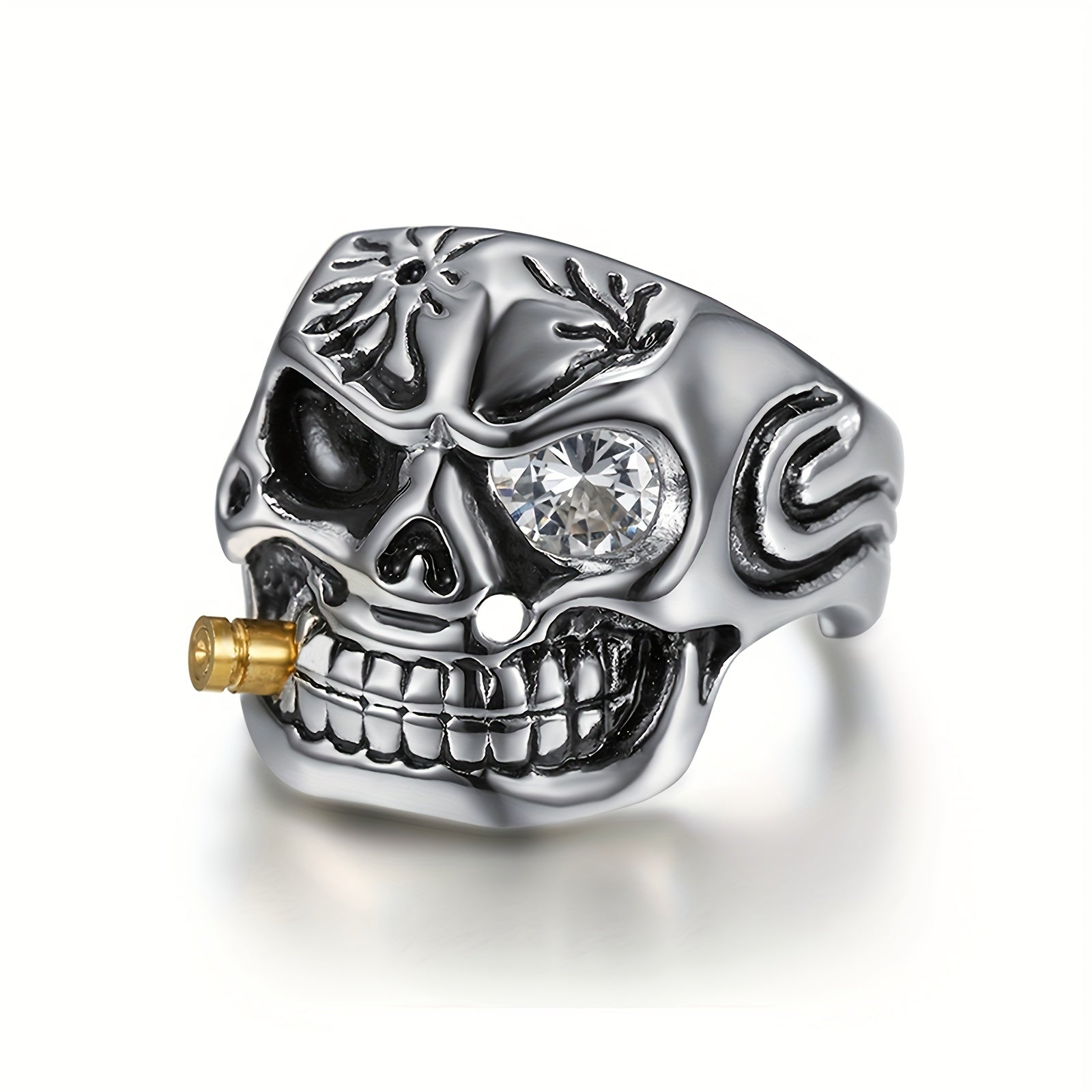 Add a touch of stylish edginess to your look with this retro classic skull and pipe men's ring. Made of durable stainless steel, this hip hop ring is a bold statement piece that exudes cool vibes.
