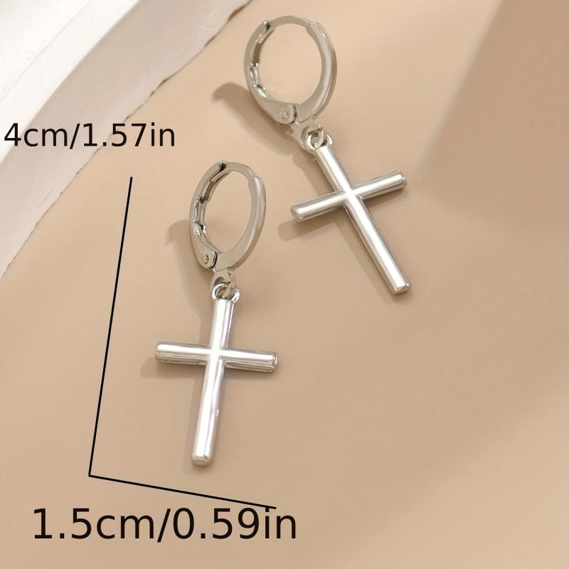Elegant and stylish silvery ear clip earrings with retro cross pendant design.