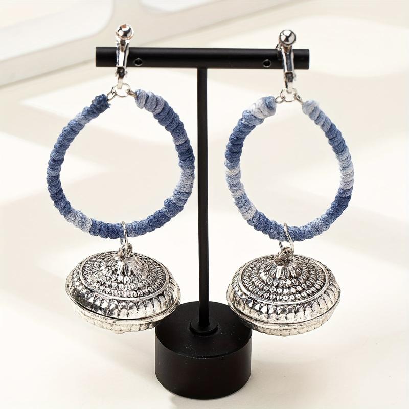 These fashionable retro ethnic style Indian exotic earrings are perfect for adding a touch of bohemian flair to any outfit. They feature a clip-on design for easy wear.