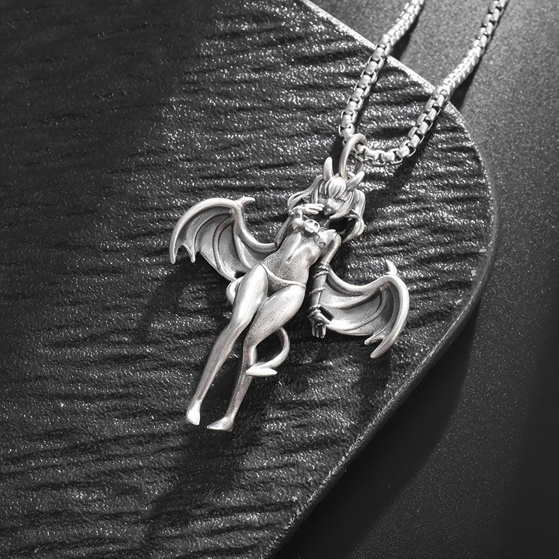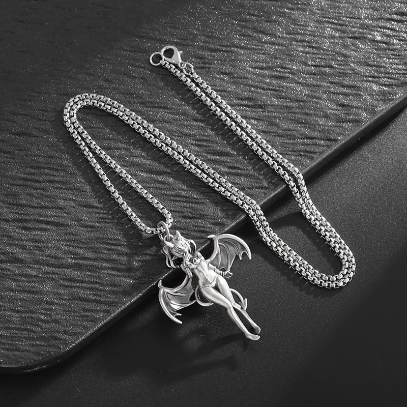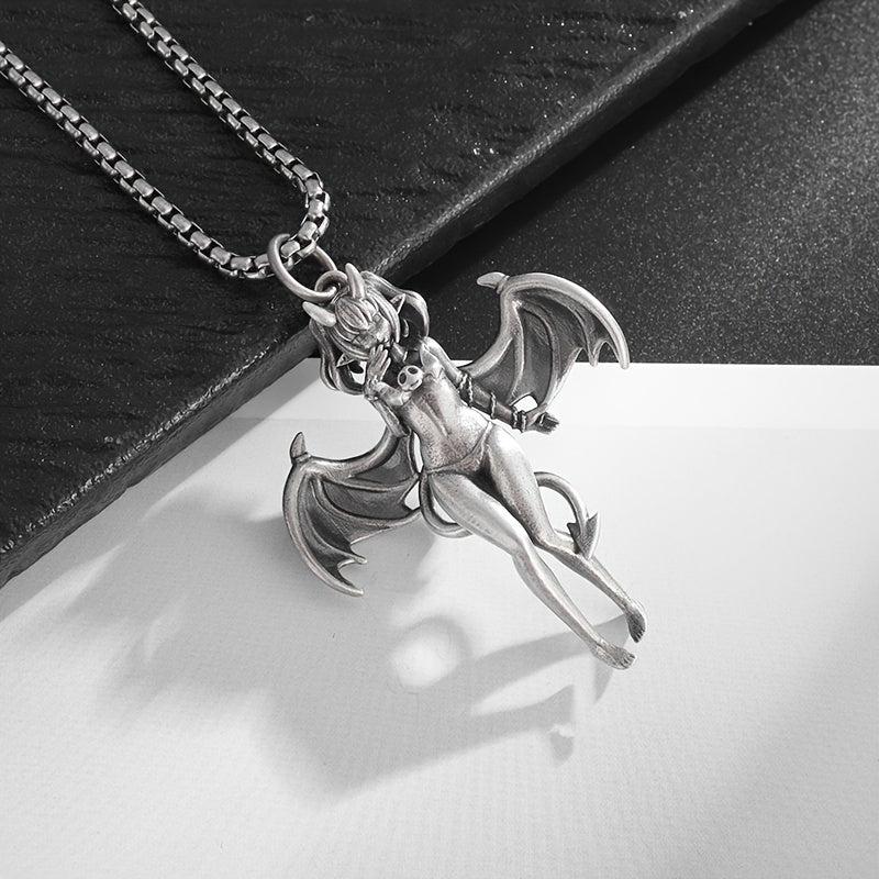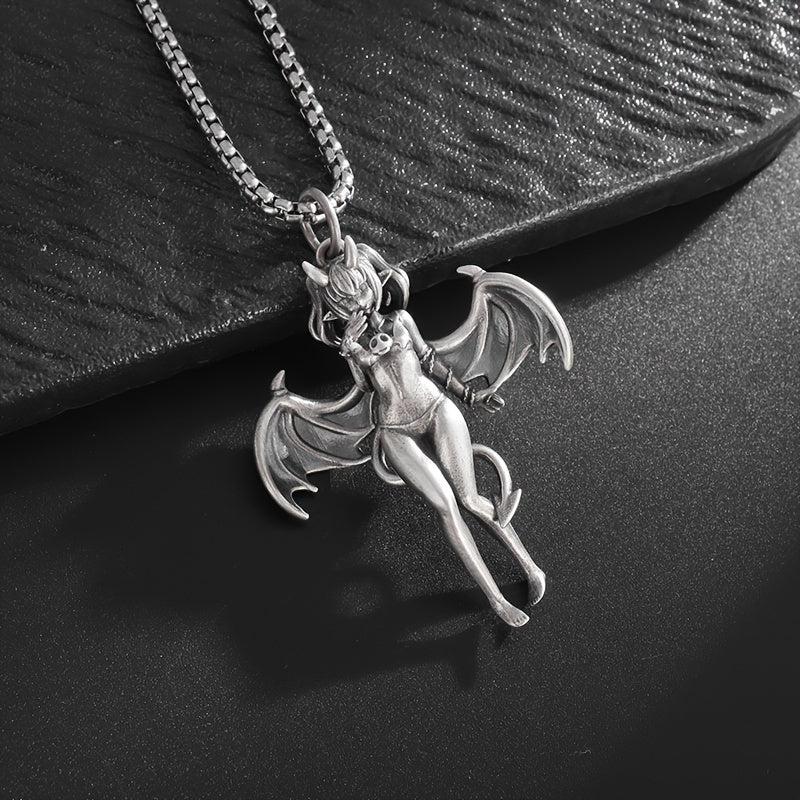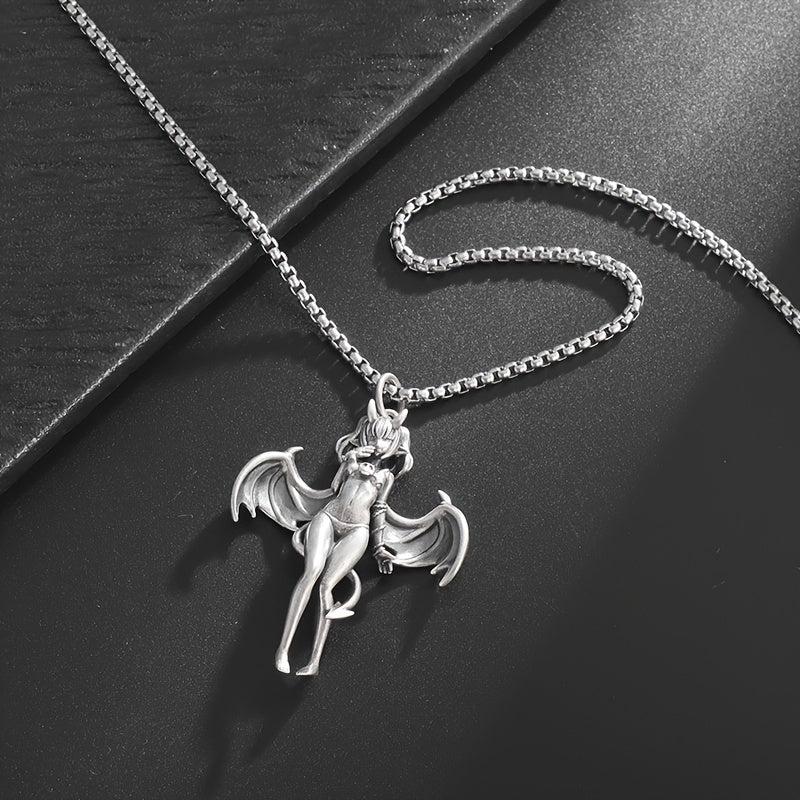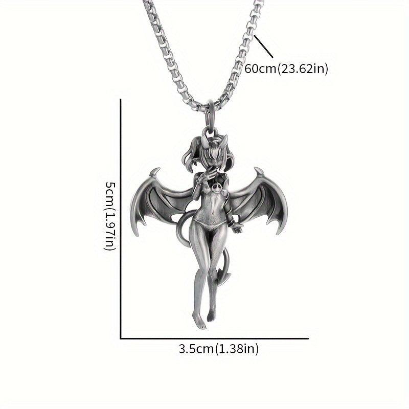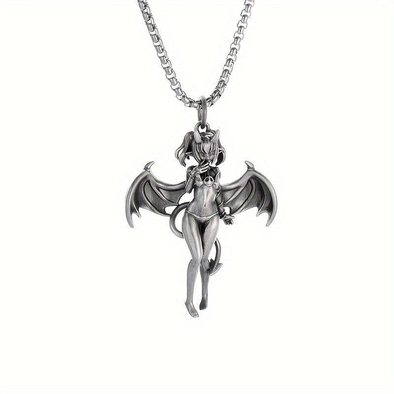 This retro evil angel pendant necklace features angel wings for a unique and stylish look. Perfect for parties or as a special gift for a loved one.