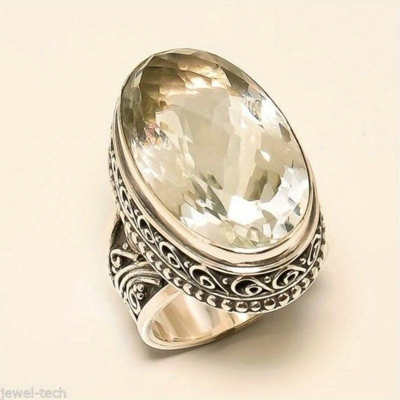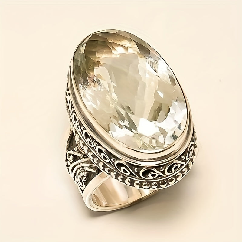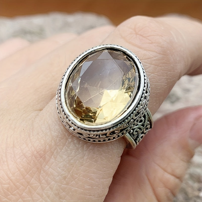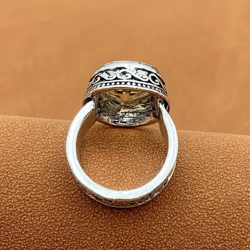 This retro fashion alloy ring features a beautiful artificial gemstone, suitable for both men and women. The unique design adds a touch of style to any outfit.