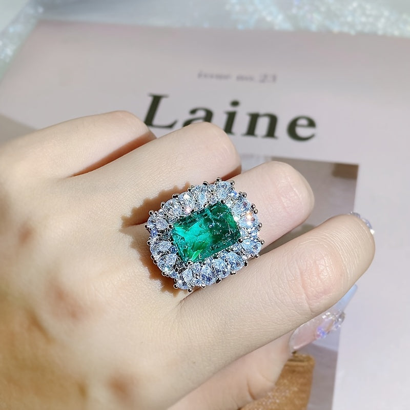 This retro style ring features faux emerald and zircon, perfect for banquets and parties. Great gift for women and girls.
