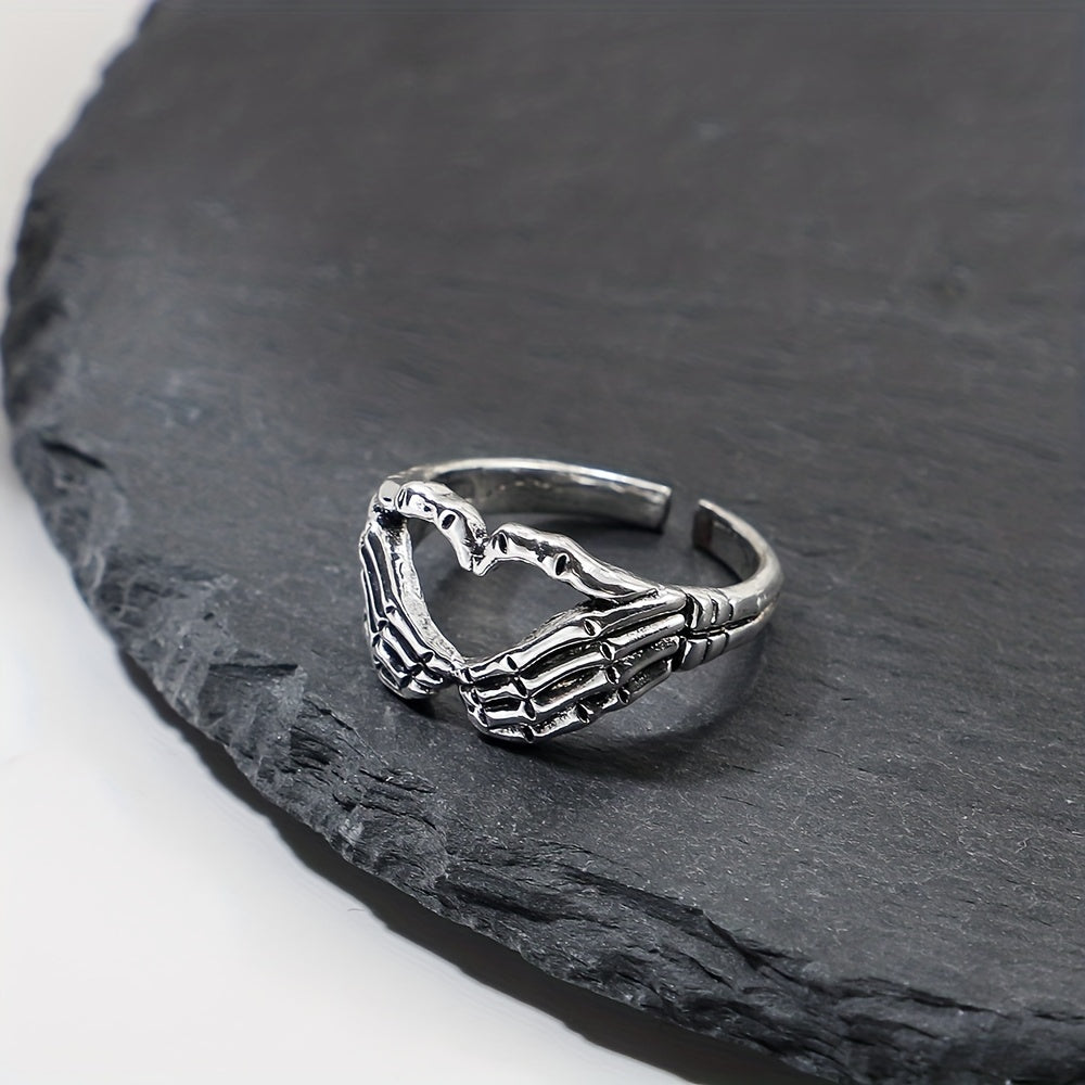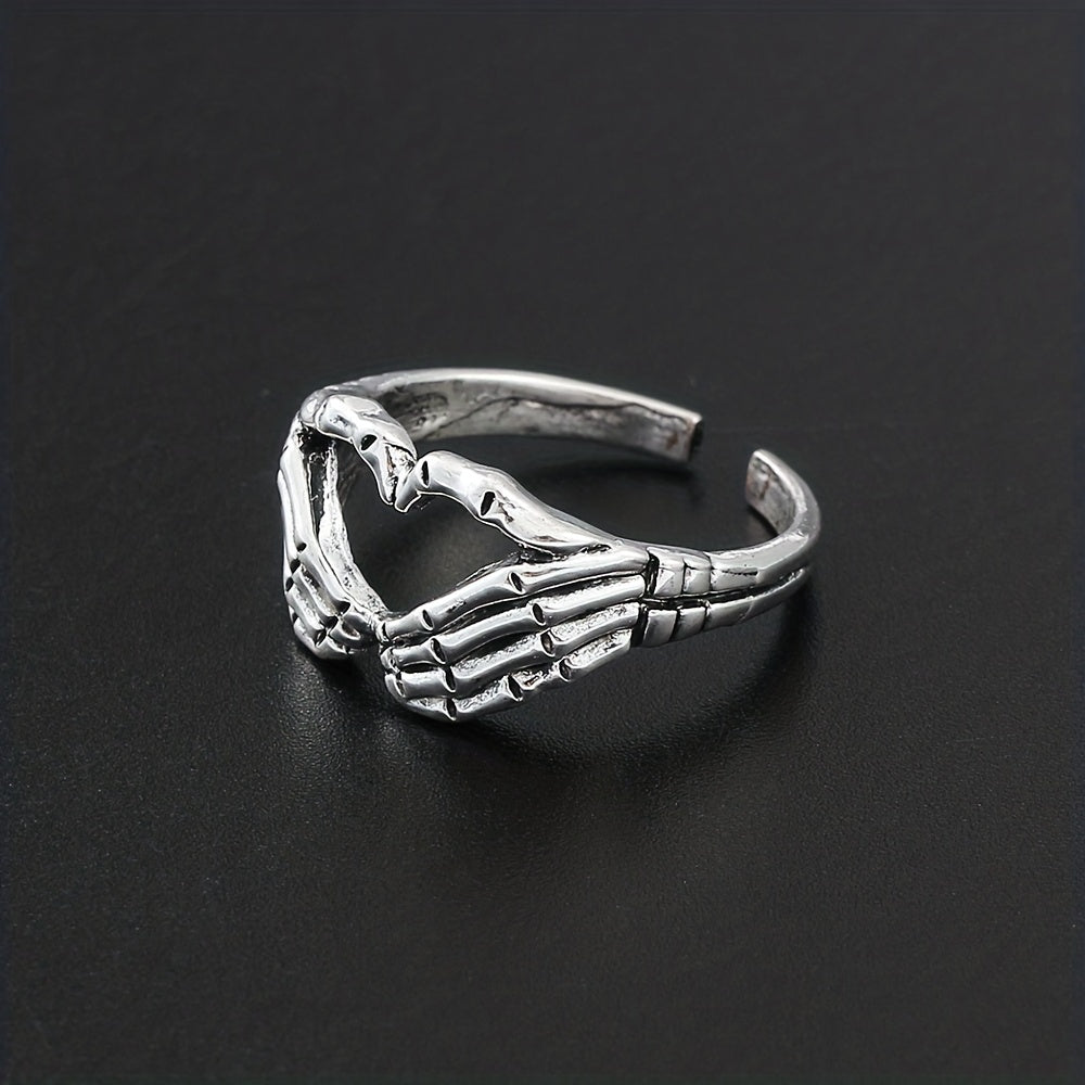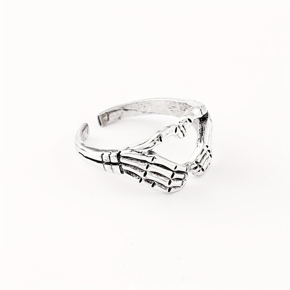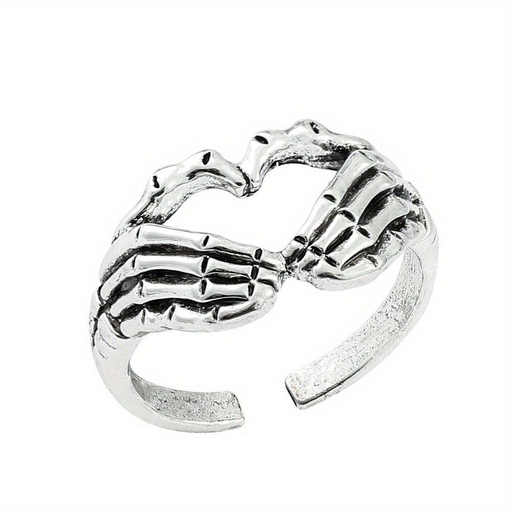 Add a touch of punk style with this unique silver skull hand shaped ring. Made of high quality zinc alloy, this ring is a perfect accessory for both men and women.