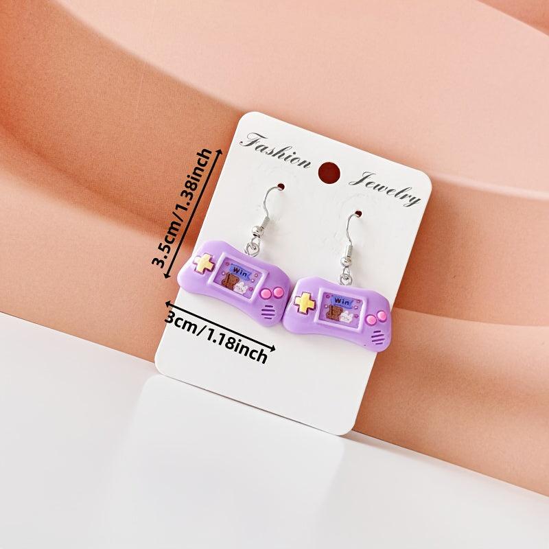 Add a fun touch to your outfit with these 3D resin retro game controller pendant earrings. The earrings feature purple & pink accents, making them perfect for parties and holidays. They are lightweight and durable, adding a stylish retro vibe to your look.