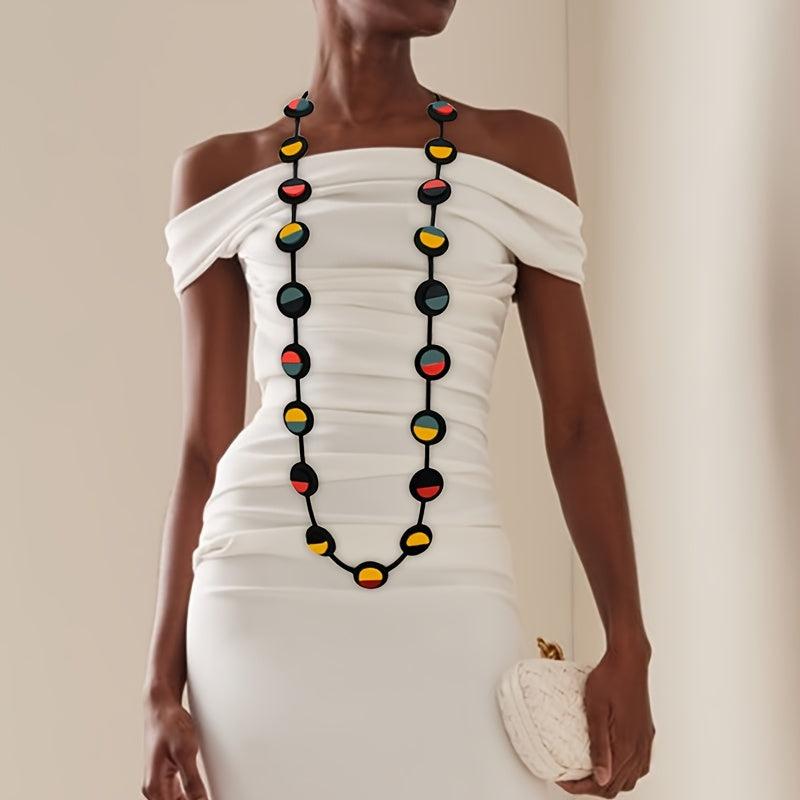 Elevate your style with this vibrant beaded long pendant necklace, perfect for parties, vacations, and all seasons. A versatile accessory that adds a touch of elegance.