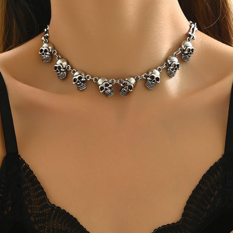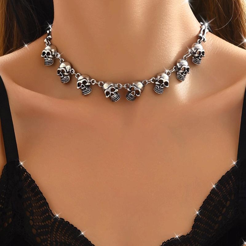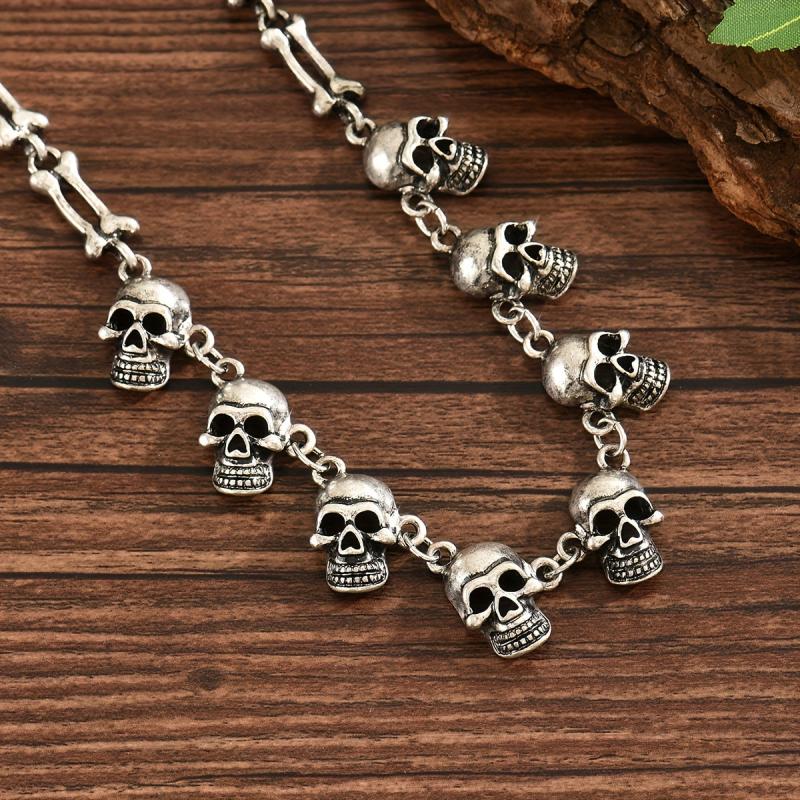 Add a spooky touch to your outfit with this skull necklace perfect for Halloween parties.