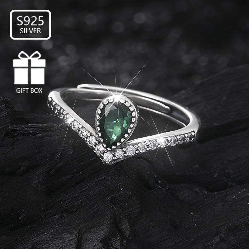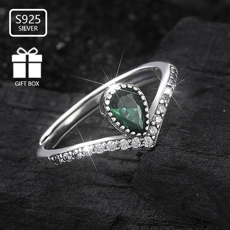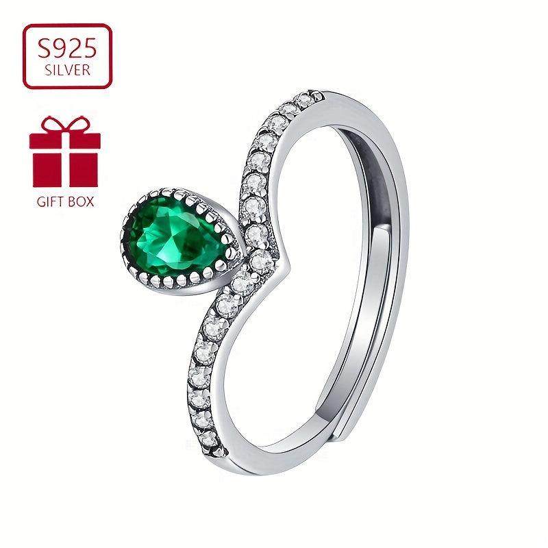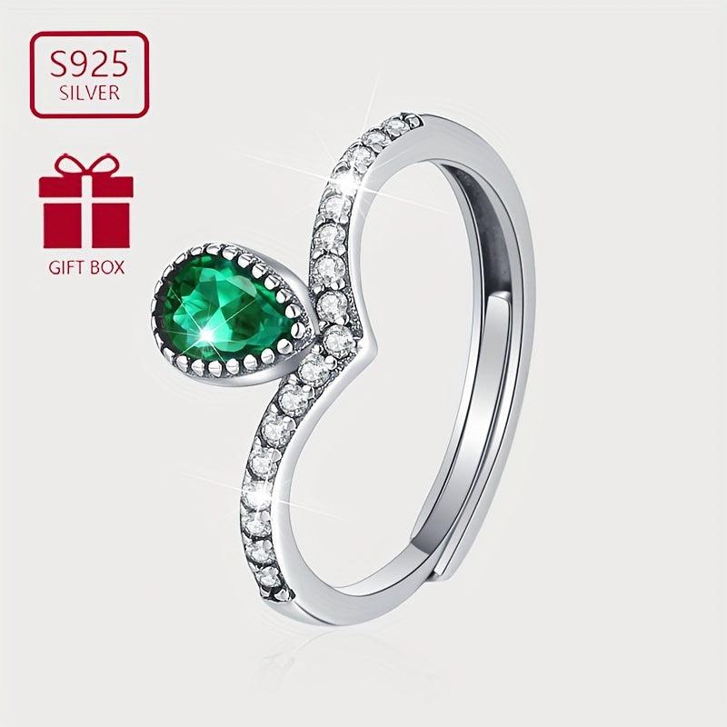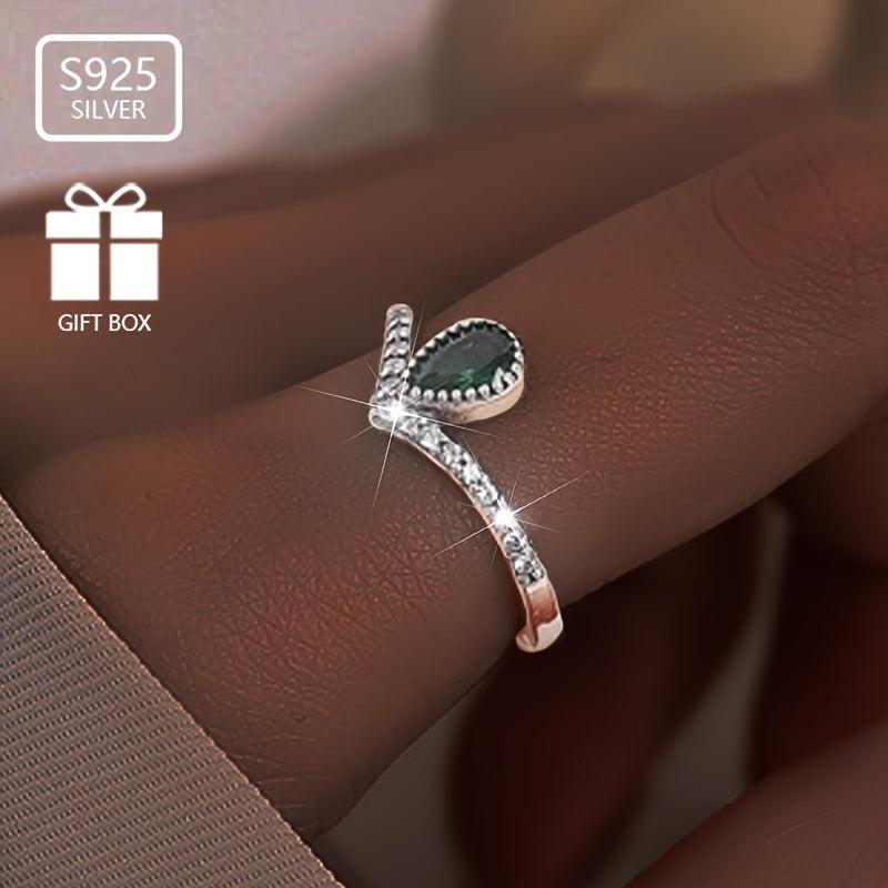 This stylish green zirconia ring features a retro design with micro inlaid synthetic zirconia on 925 sterling silver. Weighs approximately 1.83g, making it a perfect gift for female friends or best.