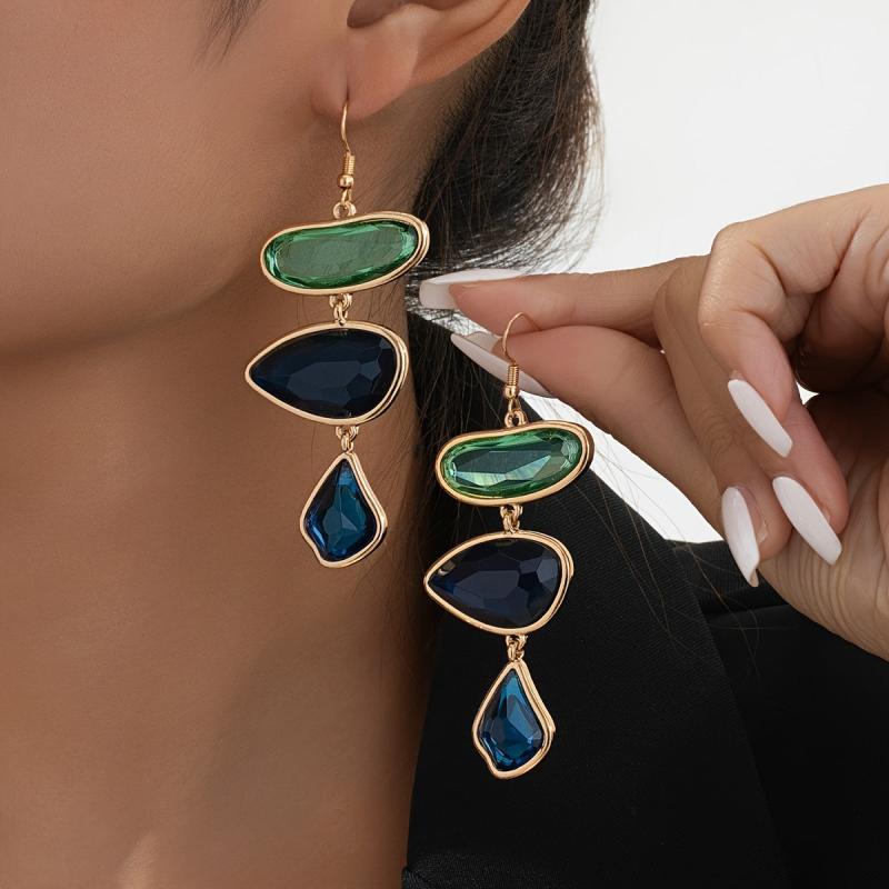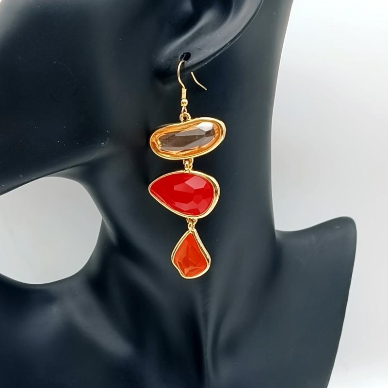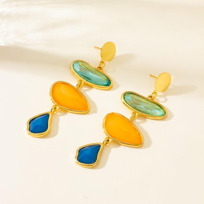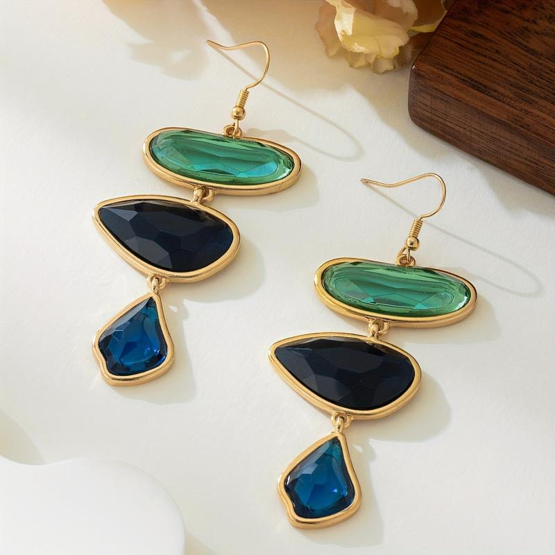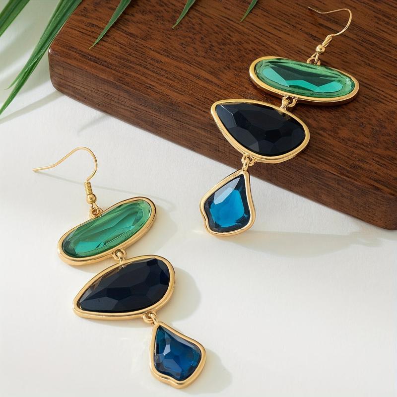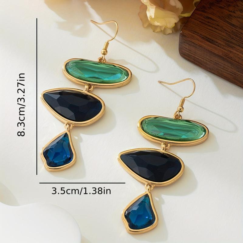These retro-style resin earrings feature irregular faceted design for a three-dimensional look. The inlaid details add an atmospheric and geometric touch, making them perfect for various occasions.