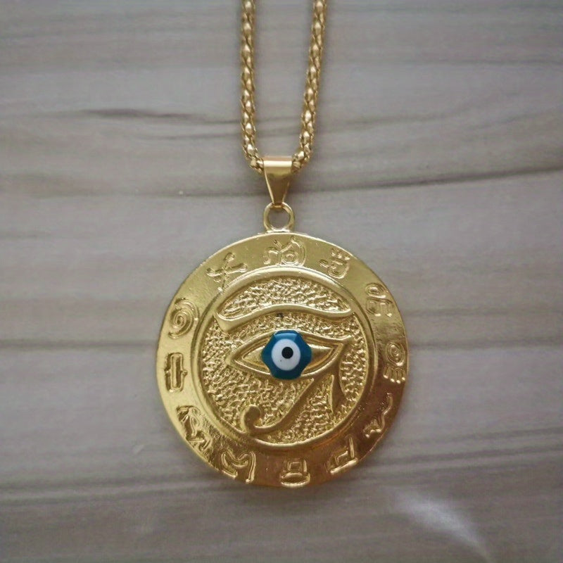 This eye of Horus amulet necklace is a unique piece of artificial jewelry inspired by ancient Egypt. Perfect for anniversaries or special occasions.