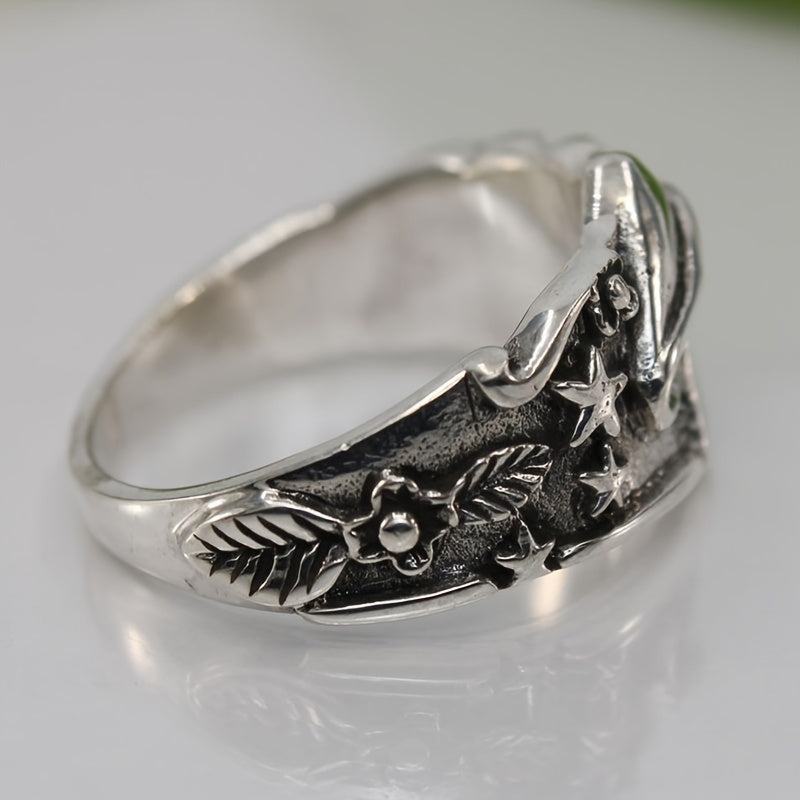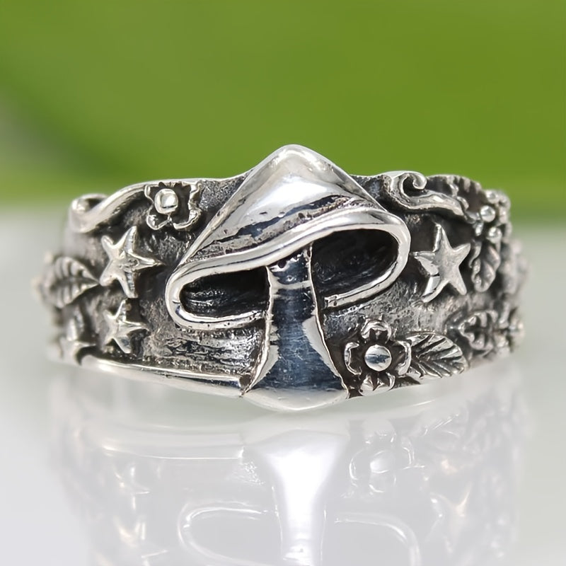 Add a touch of personality with this retro-inspired mushroom, star, and leaf ring. A unique accessory for men's hand jewelry collection.