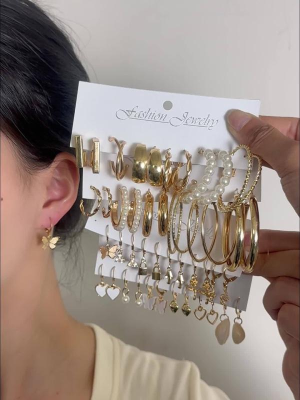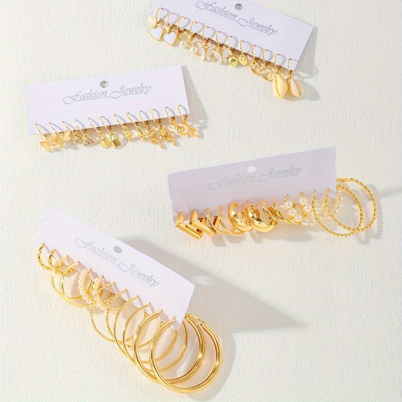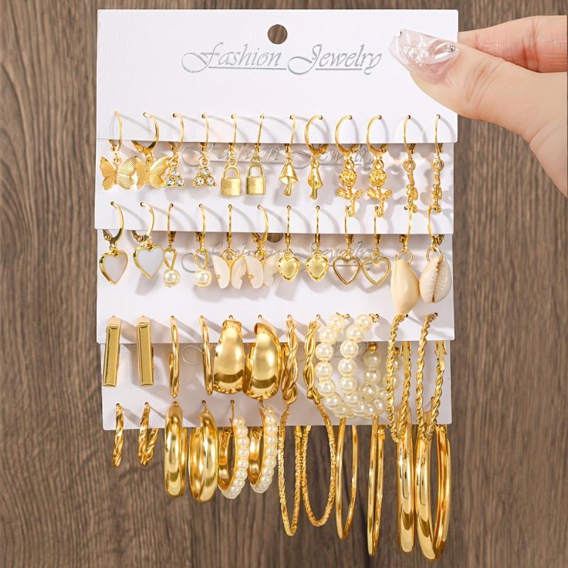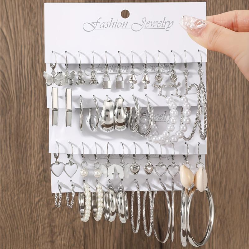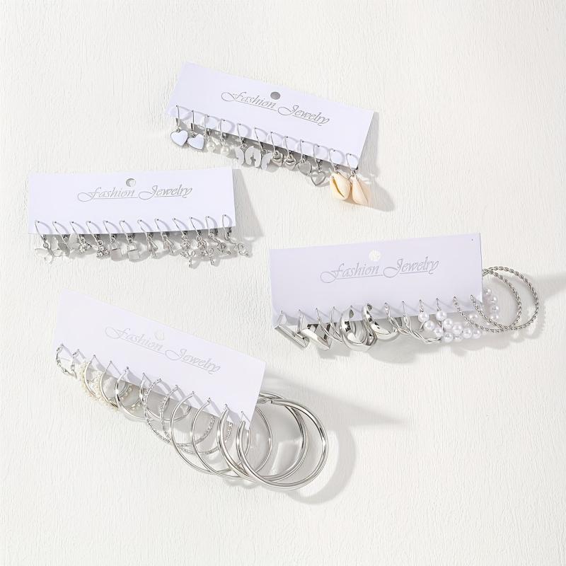 This set includes 48 stylish circular earrings for women with a retro punk style. Each earring is embedded with artificial pearls, adding a touch of elegance to any outfit.