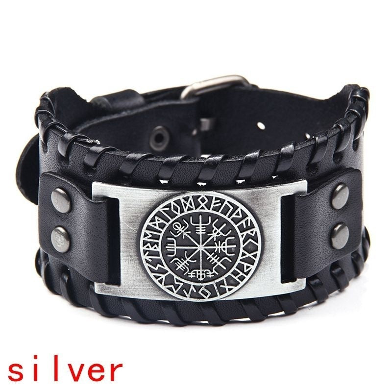 Add a touch of European and American retro style with this hot pirate bracelet featuring a compass design. Made for men who love punk fashion, this wide leather bracelet is a bold accessory.