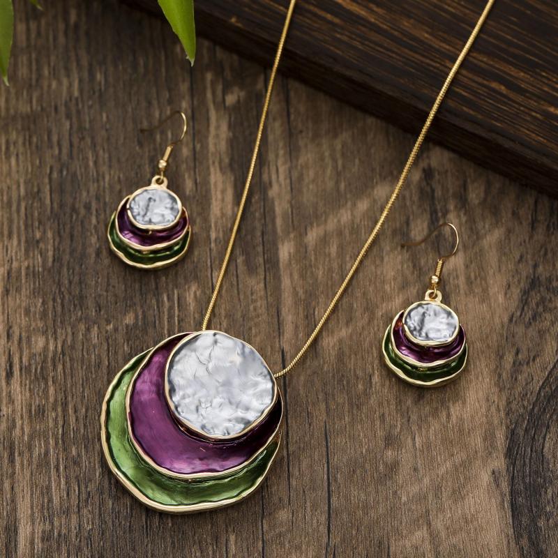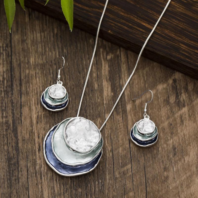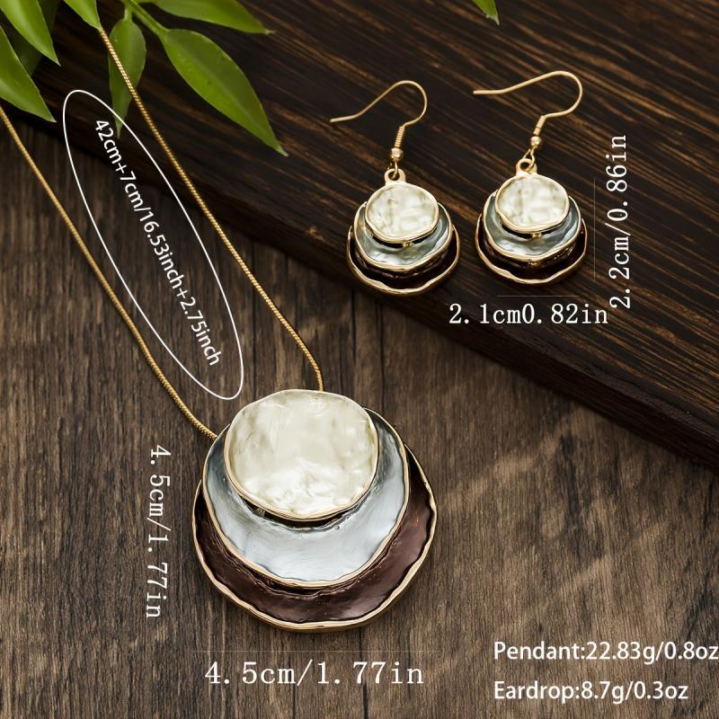 Complete your look with this elegant jewelry set featuring a unique retro plate pendant. Made of zinc alloy with a silver-plated finish, this set is a perfect gift for women.
