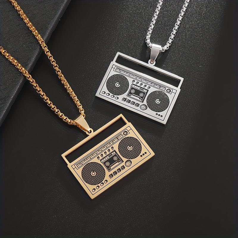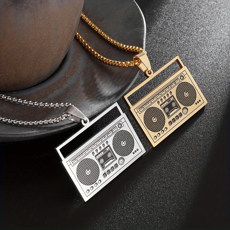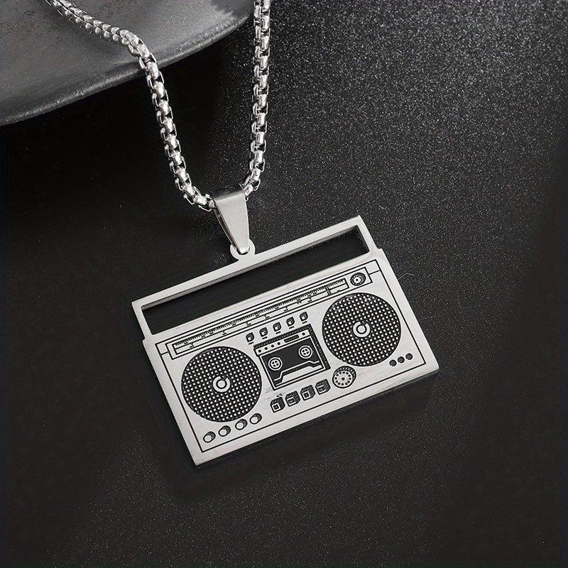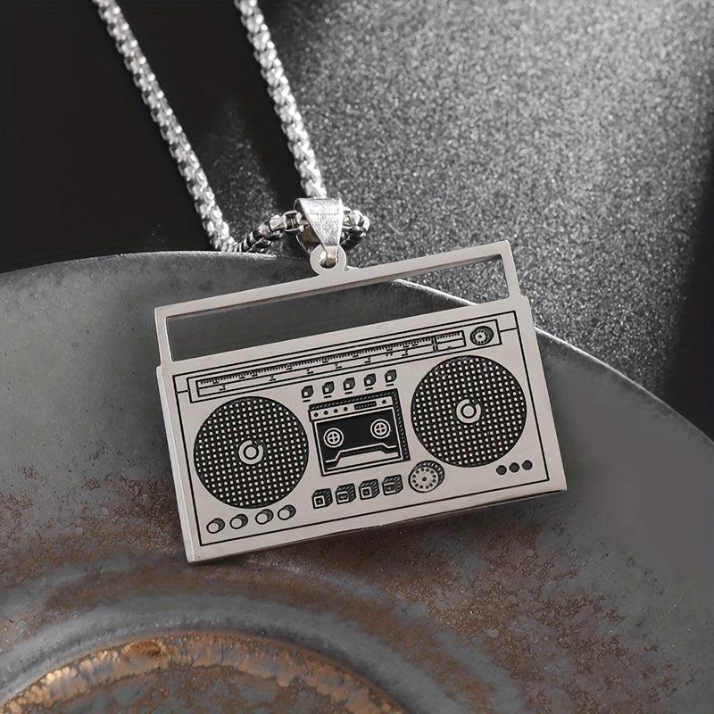 Retro Radio Pendant Stainless Steel Necklace Punk Hip hop Rock Music