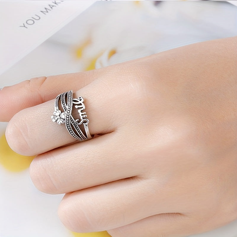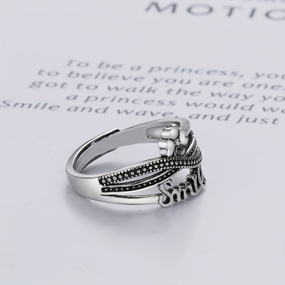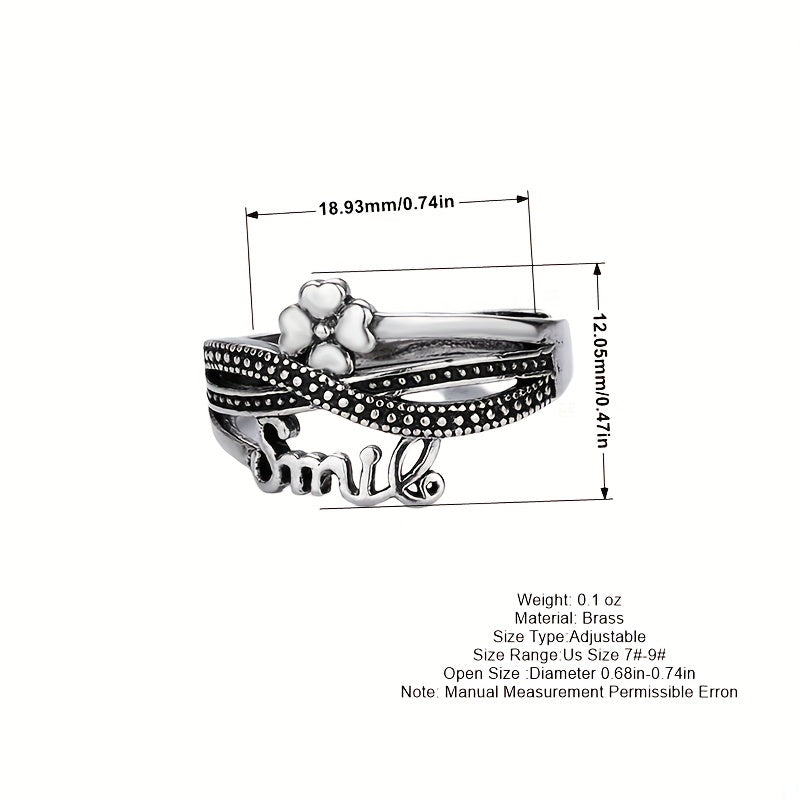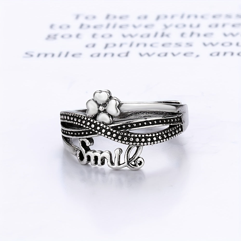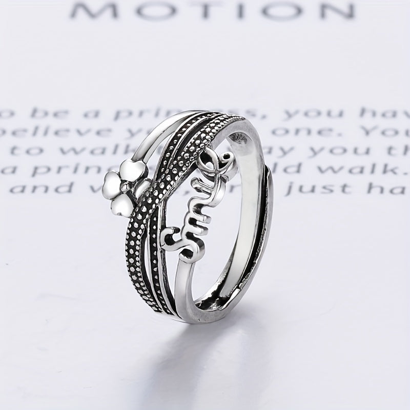 Embrace romance with this retro smile English letter ring featuring a heart shaped four leaf clover design, ideal for men.