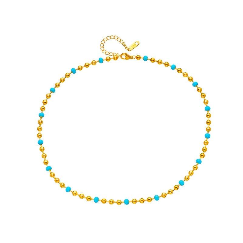Elegant necklace featuring resin beads, golden spacers, and stainless steel. Lightweight, durable, and stylish. Ideal for daily wear, gatherings, and as a gift.