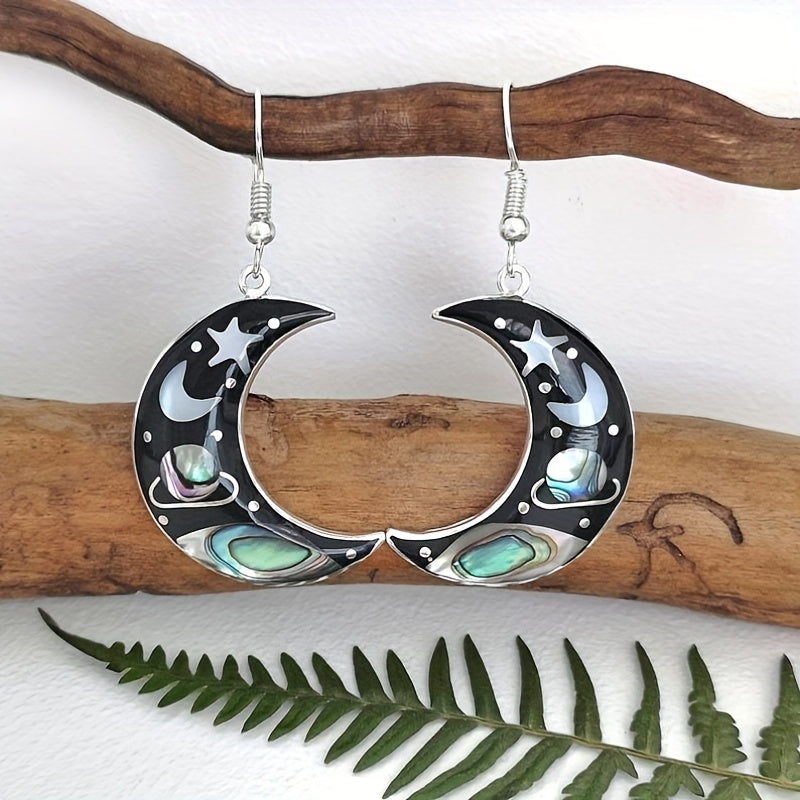 Inspired by the mysterious universe, these hook earrings feature a starry sky design with a crescent moon. Made of zinc alloy with silver plating, these earrings are an ideal gift for women and girls.