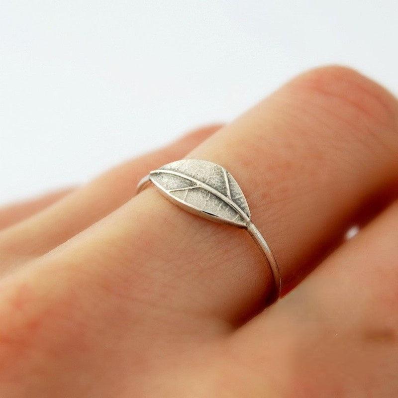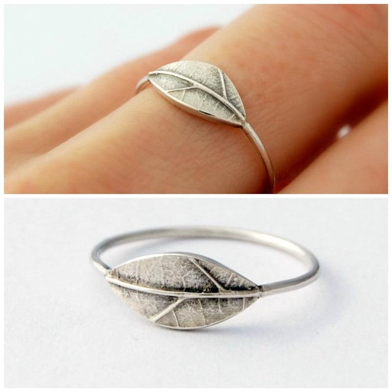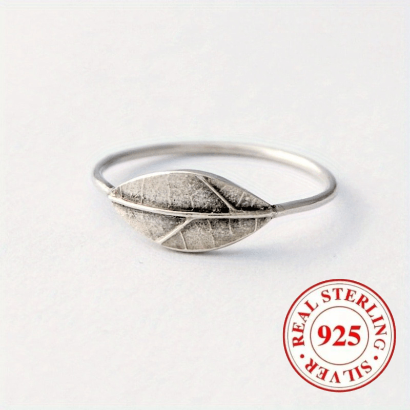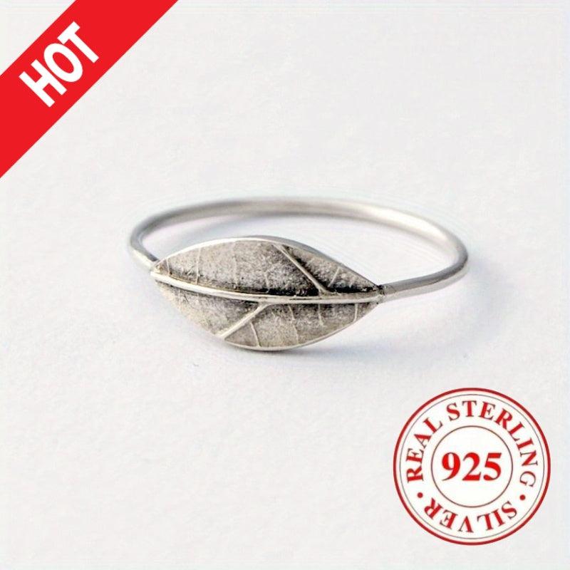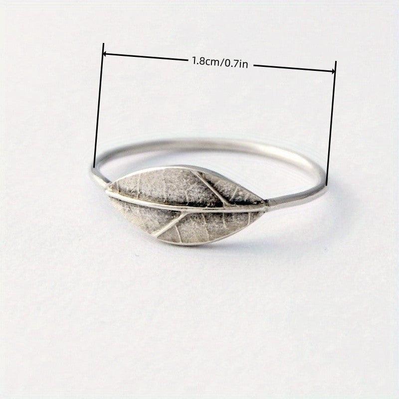 This elegant women's ring features a pure silvery retro texture with a leaf plant carved print. Perfect for daily wear or special occasions.