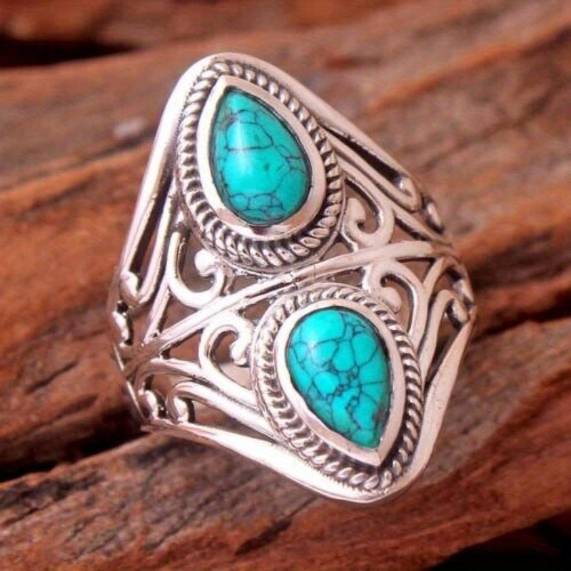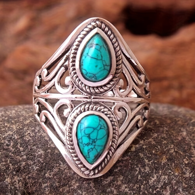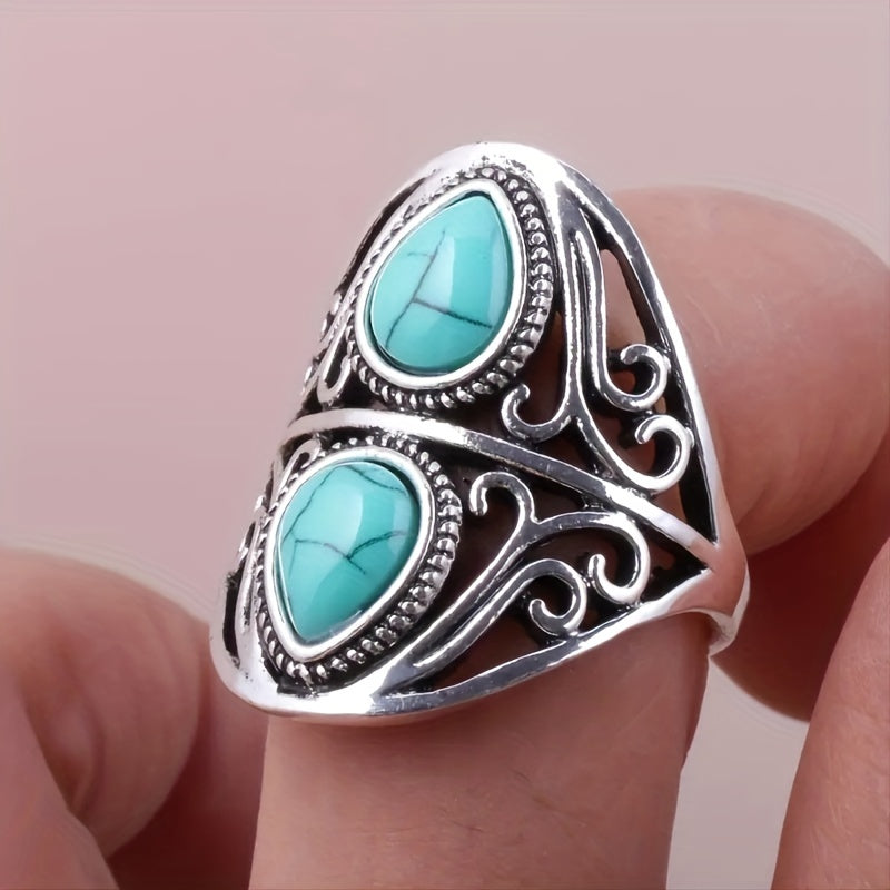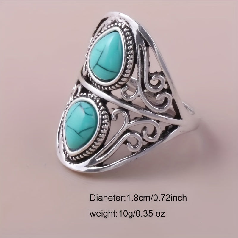 Embrace a vintage look with this stylish ring featuring a turquoise gemstone. Suitable for both men and women.