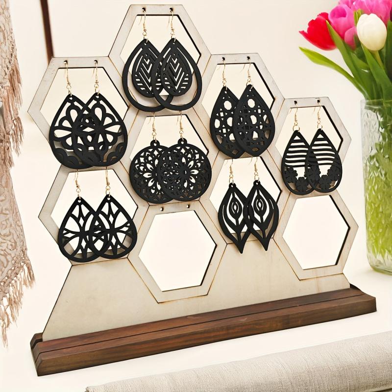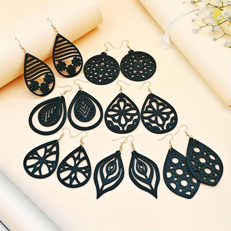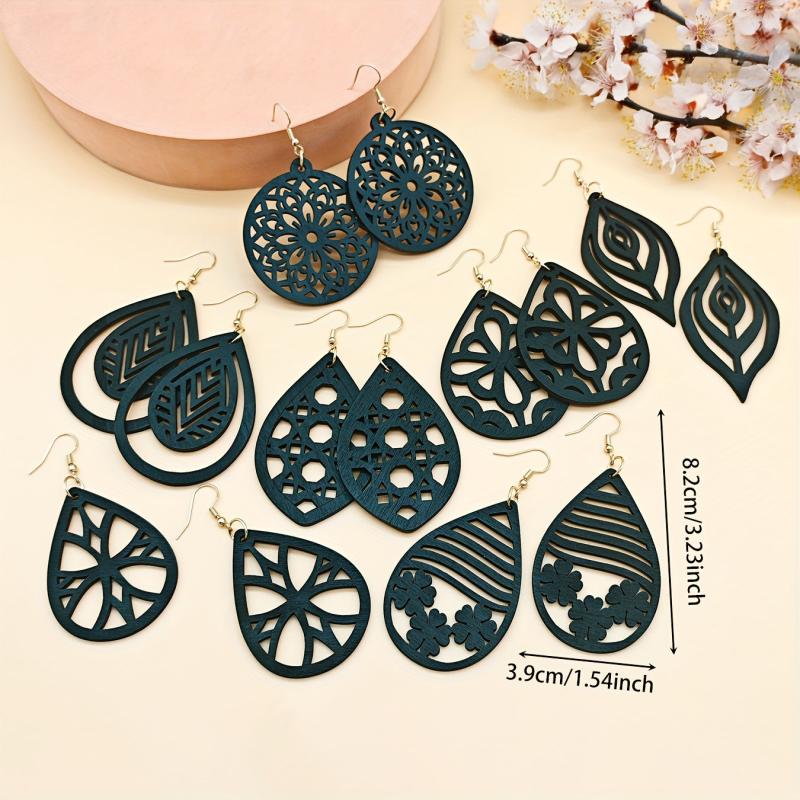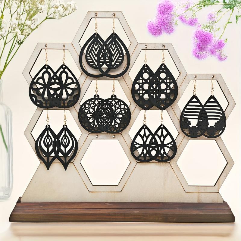 This set includes 7 pairs of retro wooden carved earrings with intricate geometric patterns. Suitable for special occasions or daily wear, these earrings are perfect for all seasons.