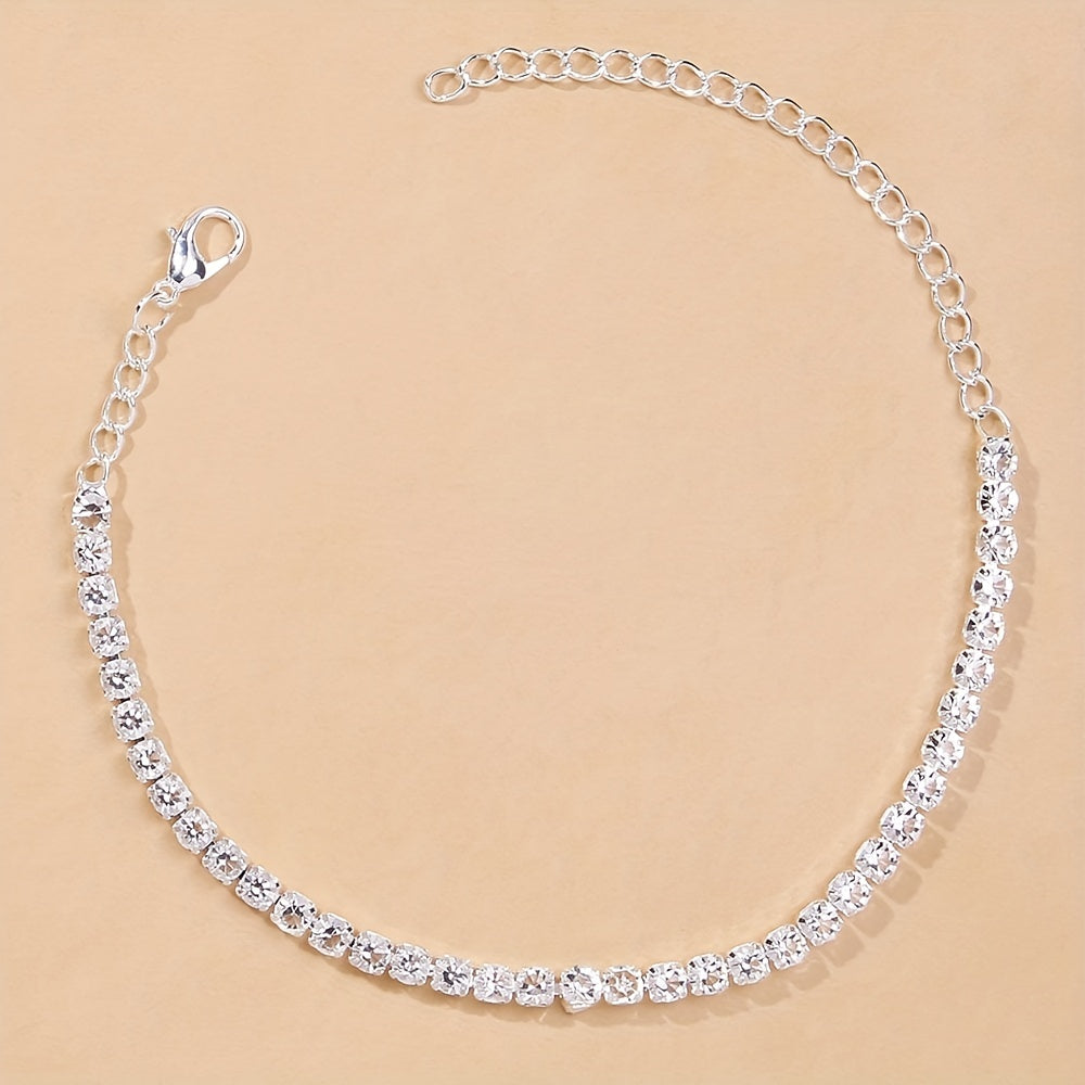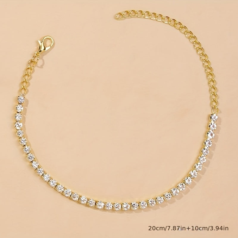 Add some sparkle to your look with this rhinestone anklet. Perfect for summer beach days or adding a touch of glam to any outfit.