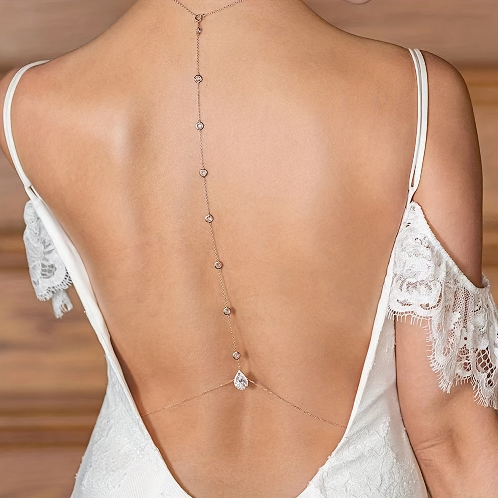 Stunning cubic zirconia back necklace for women, perfect for weddings. Add a touch of glamour to your dress with this exquisite body chain jewelry.