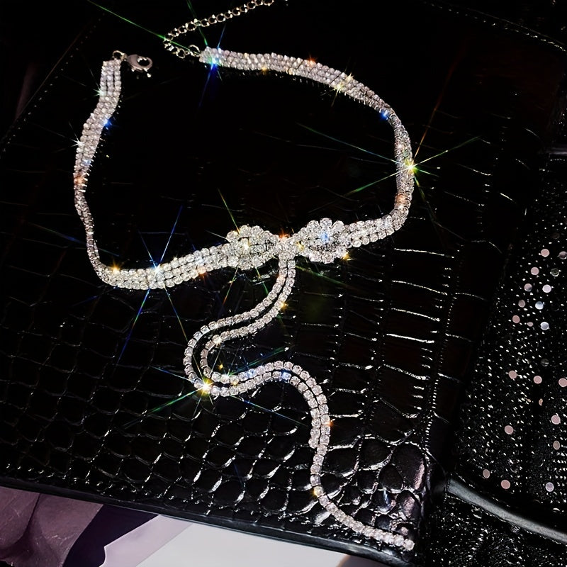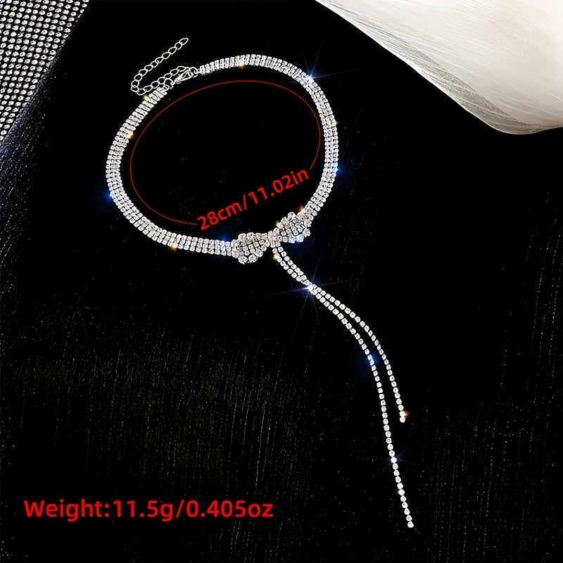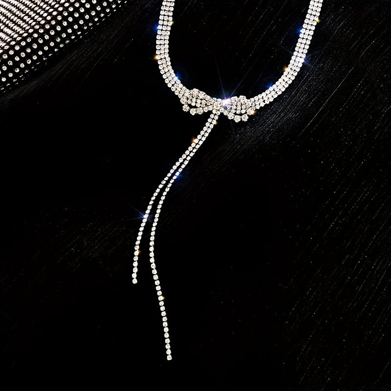 Add a touch of elegance with this rhinestone bowknot necklace featuring a long tassel design. Perfect for adding sparkle to your look.