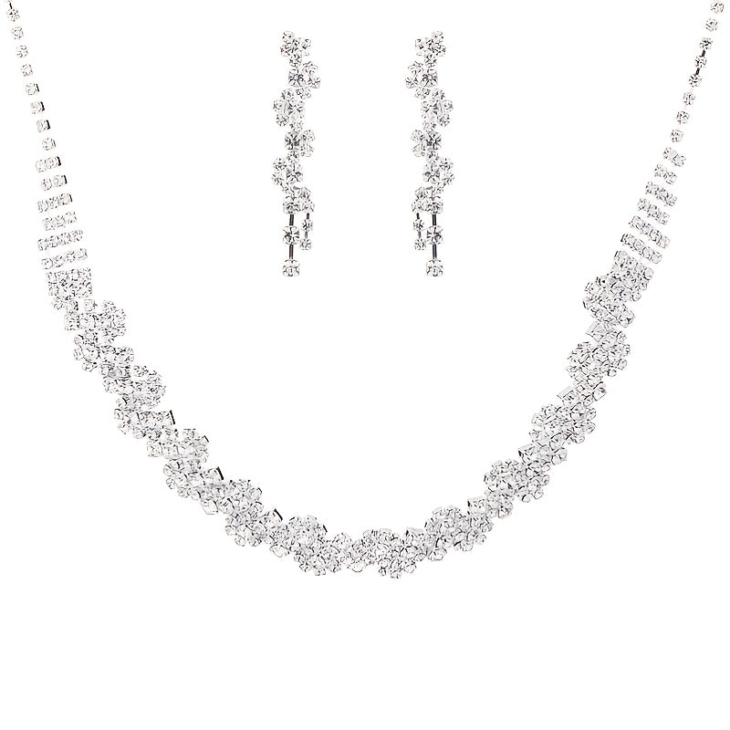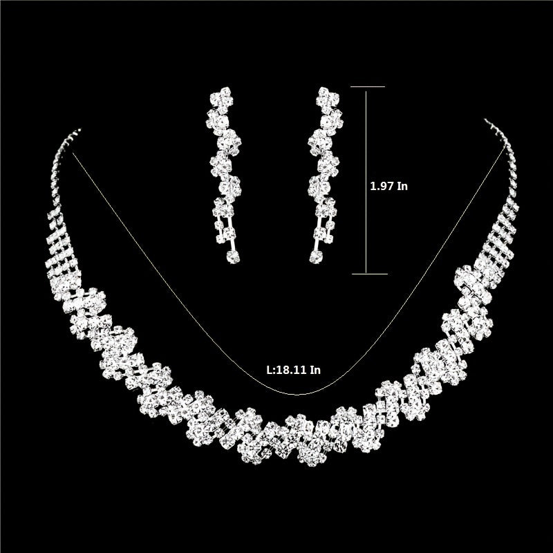 Complete your prom or wedding look with this stunning 2-piece jewelry set featuring a rhinestone choker and drop earrings. Perfect for enhancing your outfit or as photography props.