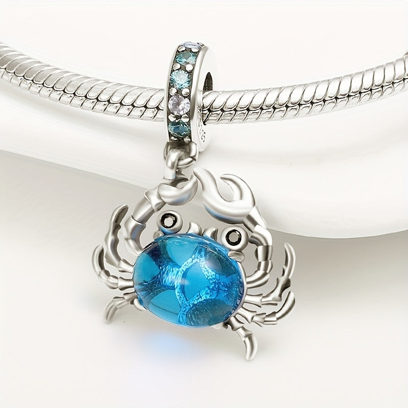 Add a touch of sparkle to your beaded bracelet with this silvery crab charm pendant adorned with rhinestones.
