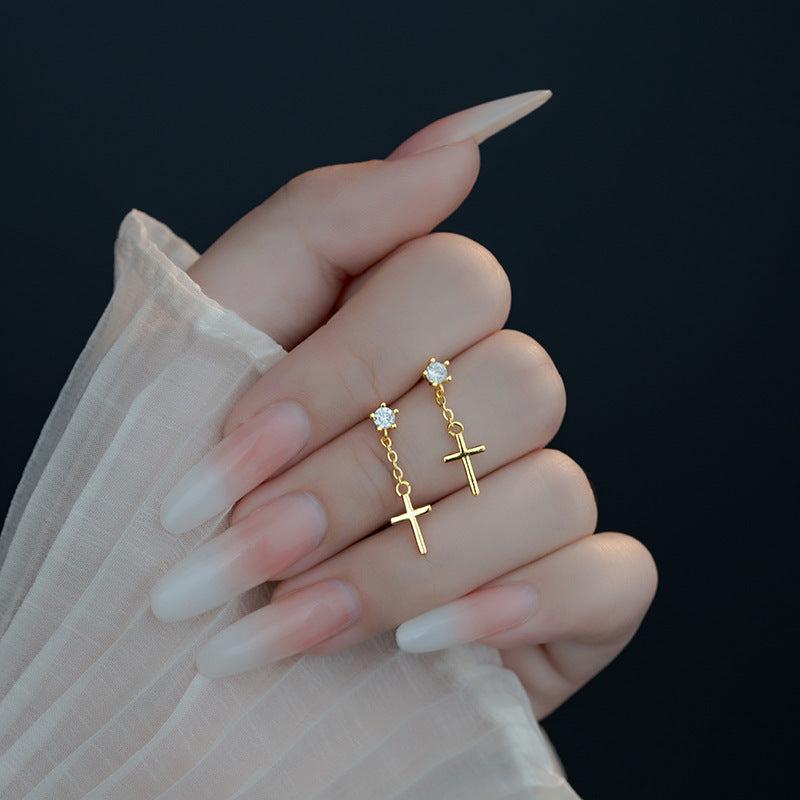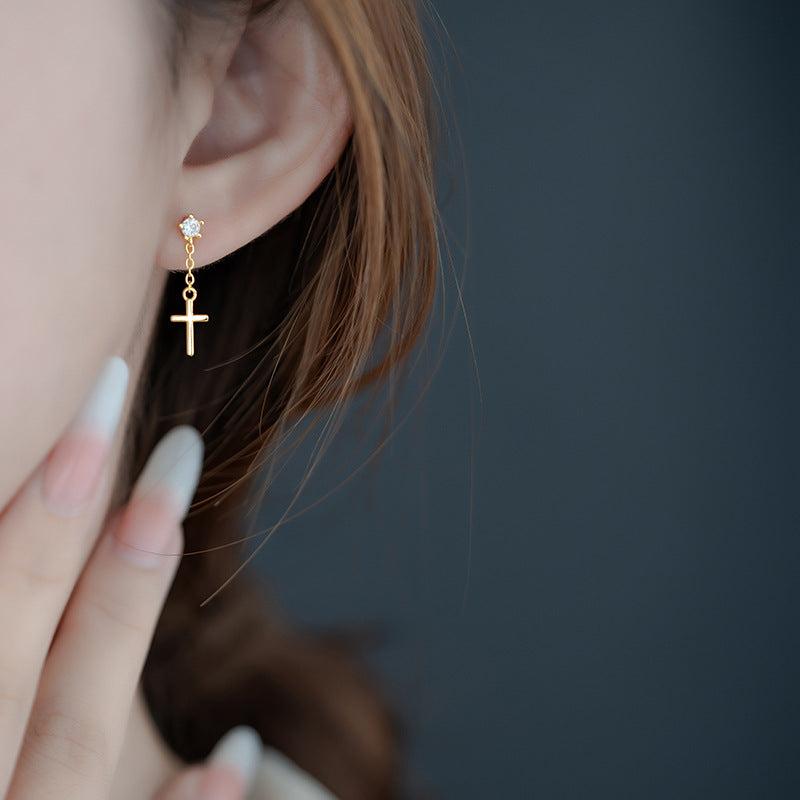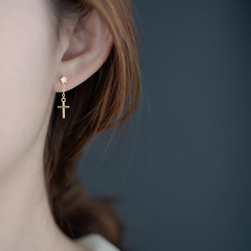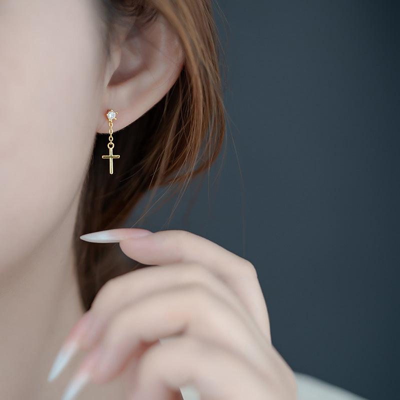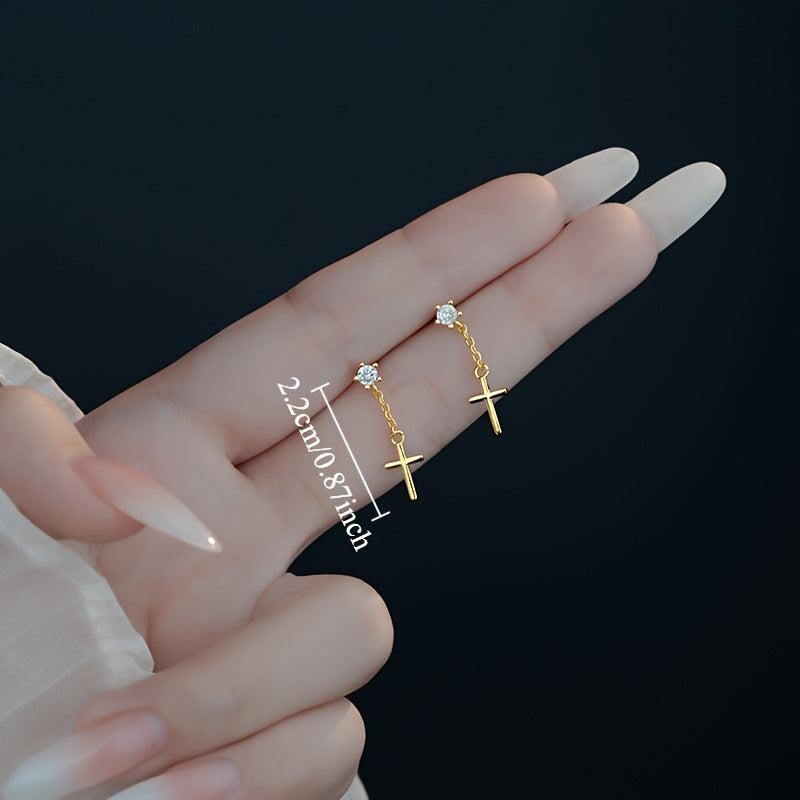 Rhinestone Cross Dangle Earrings Copper Ear Needle Non Feather Jewelry for Women